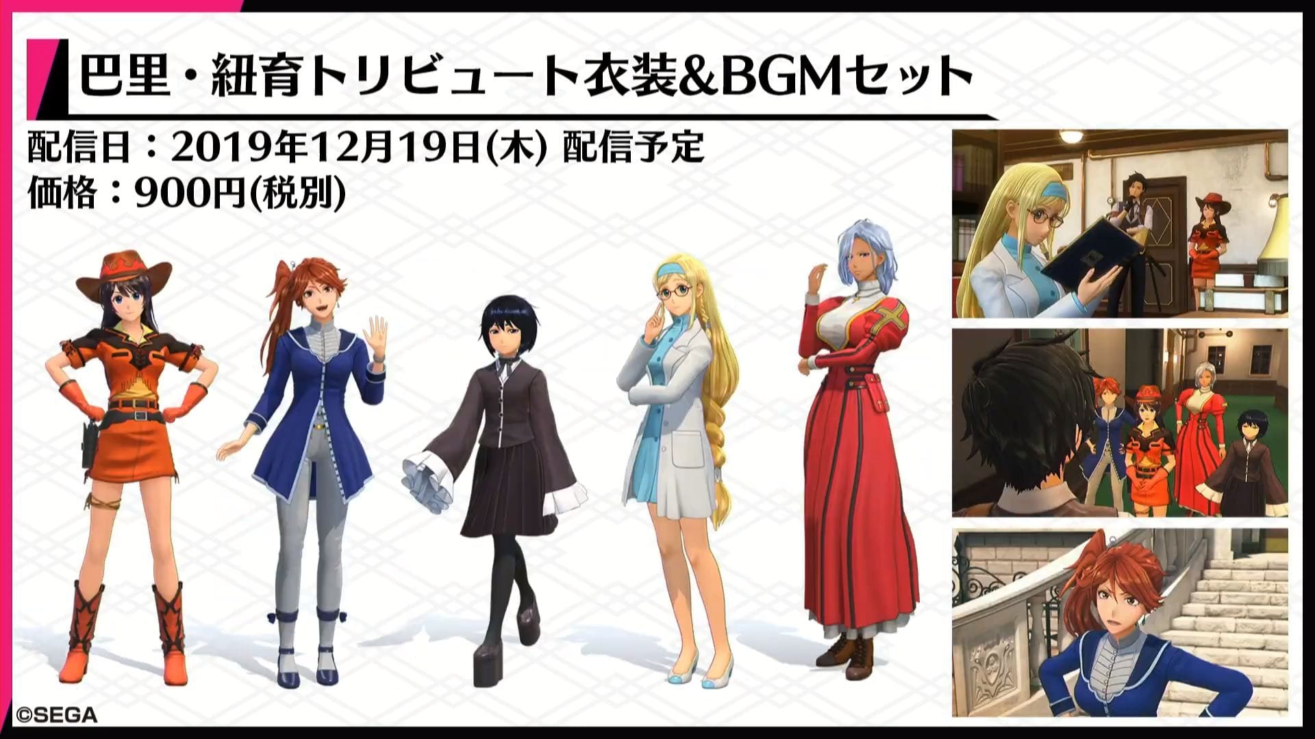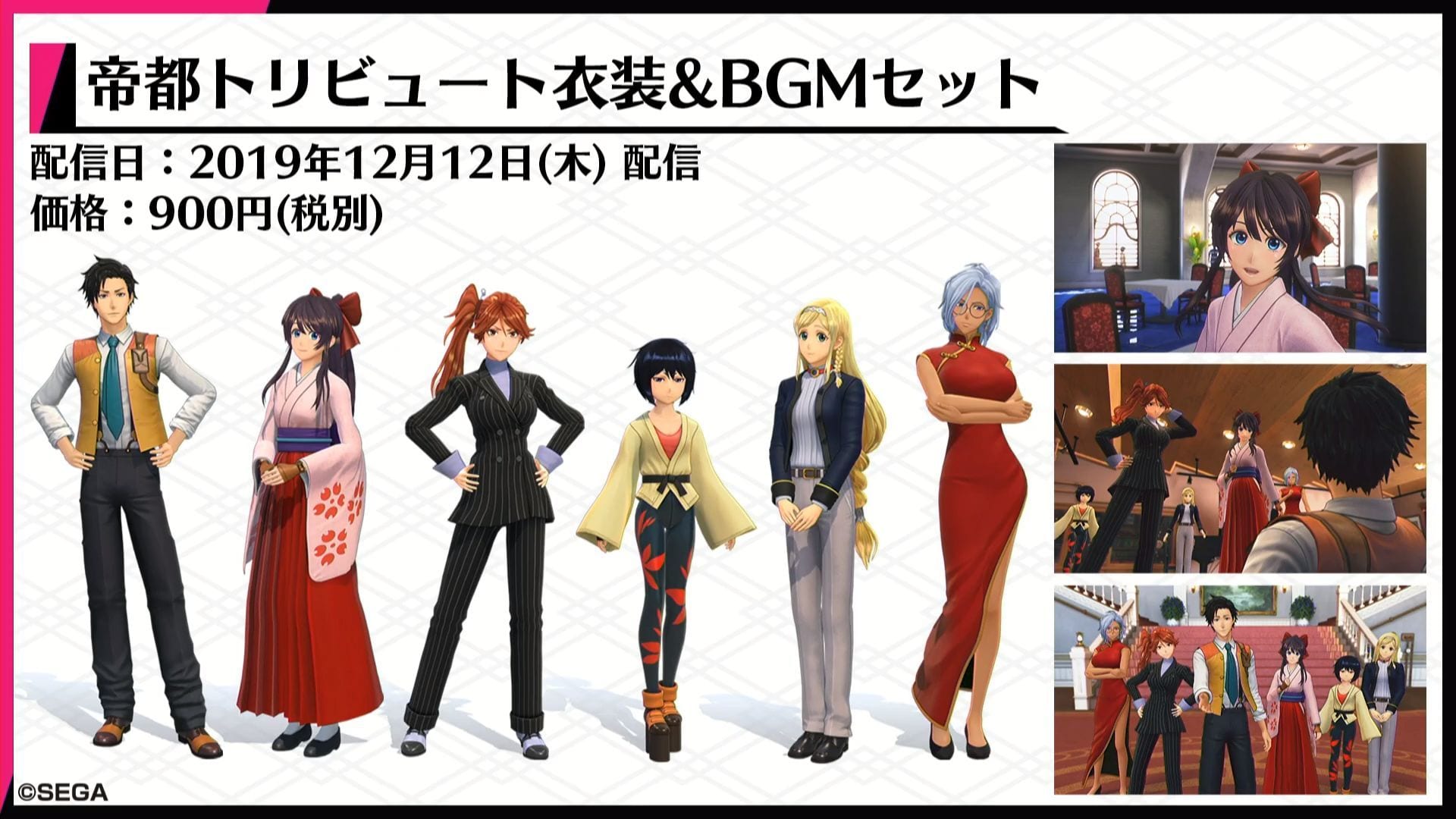 The first DLC will include costumes inspired by the original Sakura Wars launching tomorrow as a day-one DLC for 900 yen.