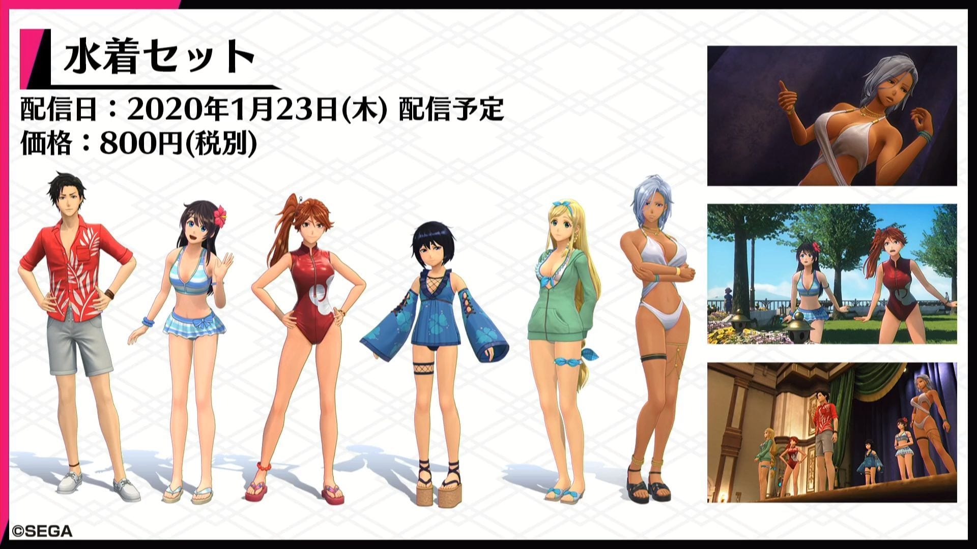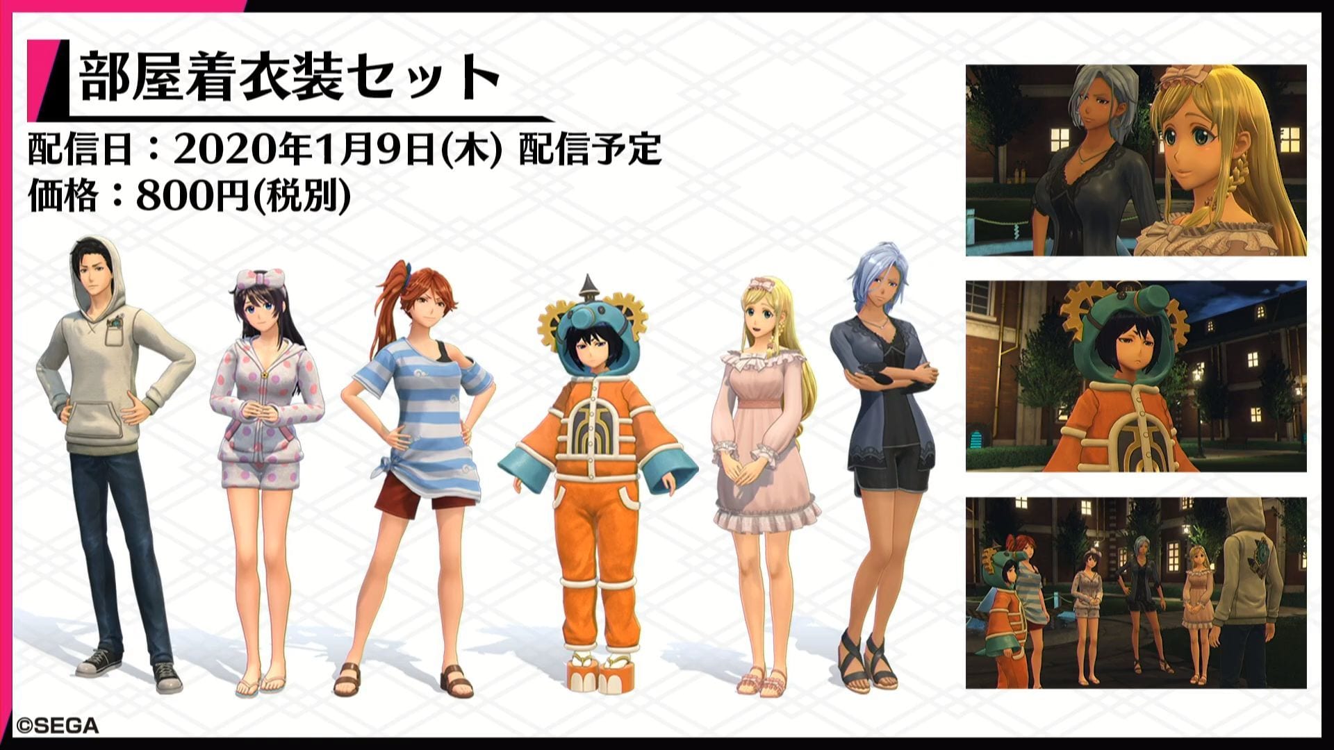 January 9 will see the launch of a DLC featuring outfits the characters would wear in their room for 800 yen. On top of that, 300 yen will net you a a DLC with halos.