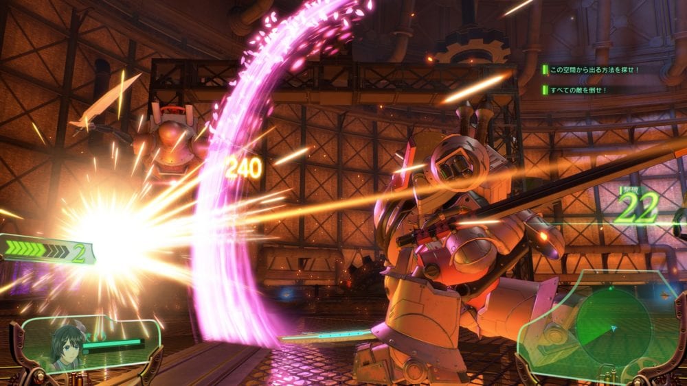 We then take another look at the action battle system. The game’s structure alternate adventure parts and battle parts. When in battle, you can switch between the mecha controlled by the captain and the other members of the team. It’s possible to take advantage of the individual abilities of each character and deliver continuous attacks on the enemies.