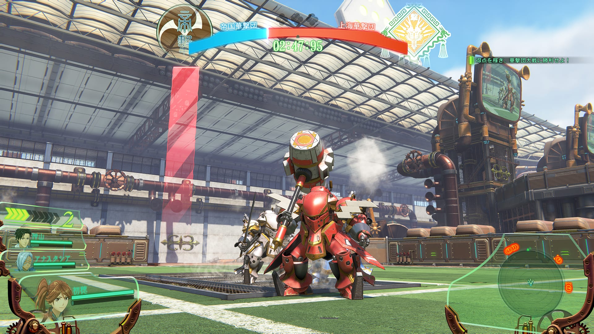 During a round, you earn points depending on how many target enemies you obliterate, and those points are reflected in a tug-of-war-style gauge at the top of the screen.