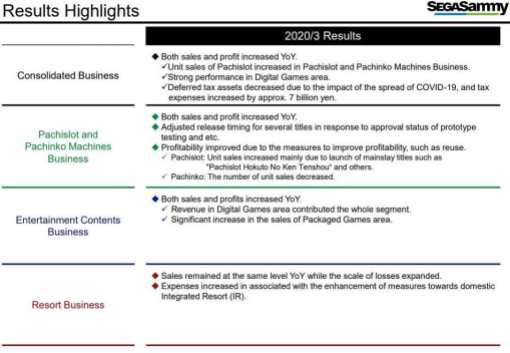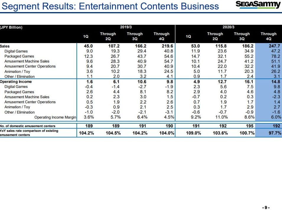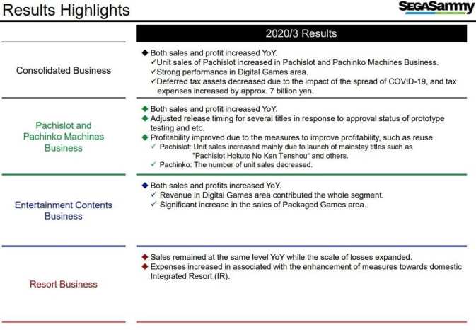 Sega released its financial results for the fiscal year ended on March 31, 2020.
