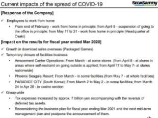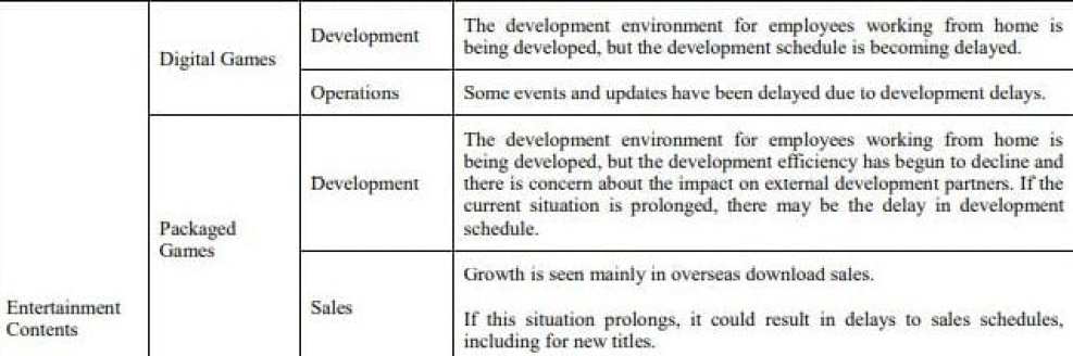 The outlook for the current fiscal year is up in the air due to the COVID-19 emergency, but below you can find a table providing an overview. It mentions possible delays of new games if the situation continues, while there is growth in the sales of packaged games, especially in download form outside of Japan.