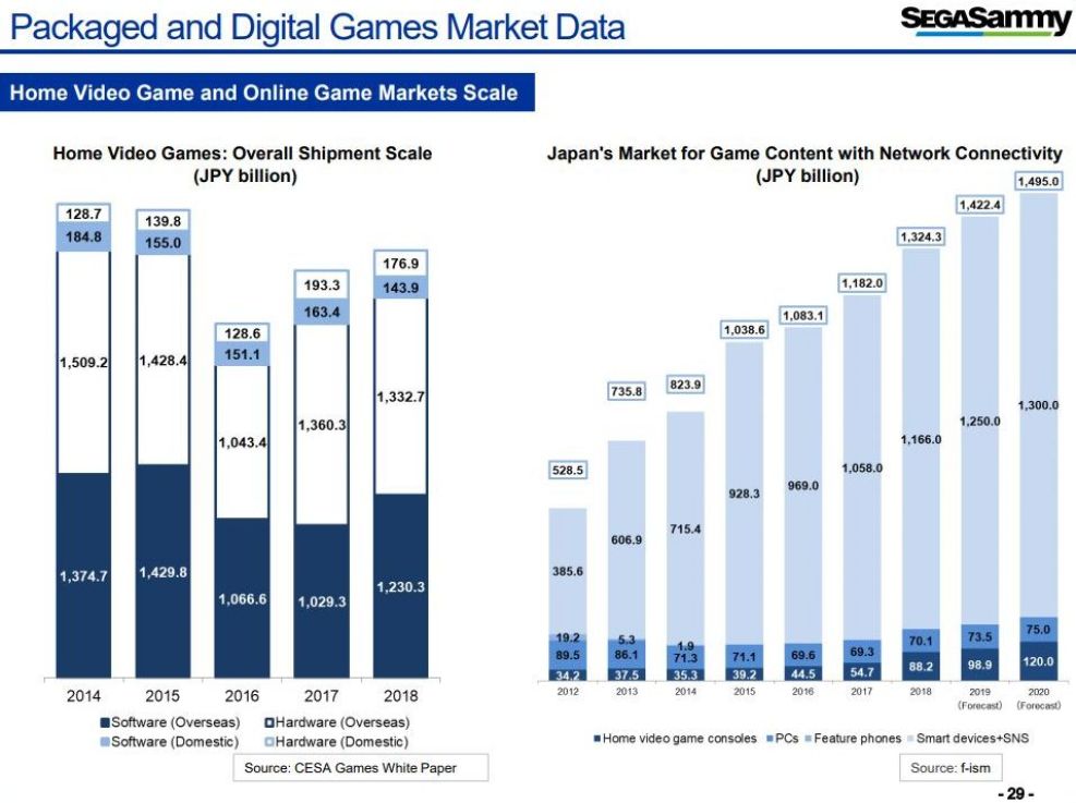 With regard to the packaged game software field, in the market for hardware of home video game consoles, the game software sales market is expanding, mainly in overseas due to the growing penetration of current-generation video game console hardware. In addition, the expectations are rising for expanding overseas download sales and revenue opportunities from new business models with the launch of new platforms and services.