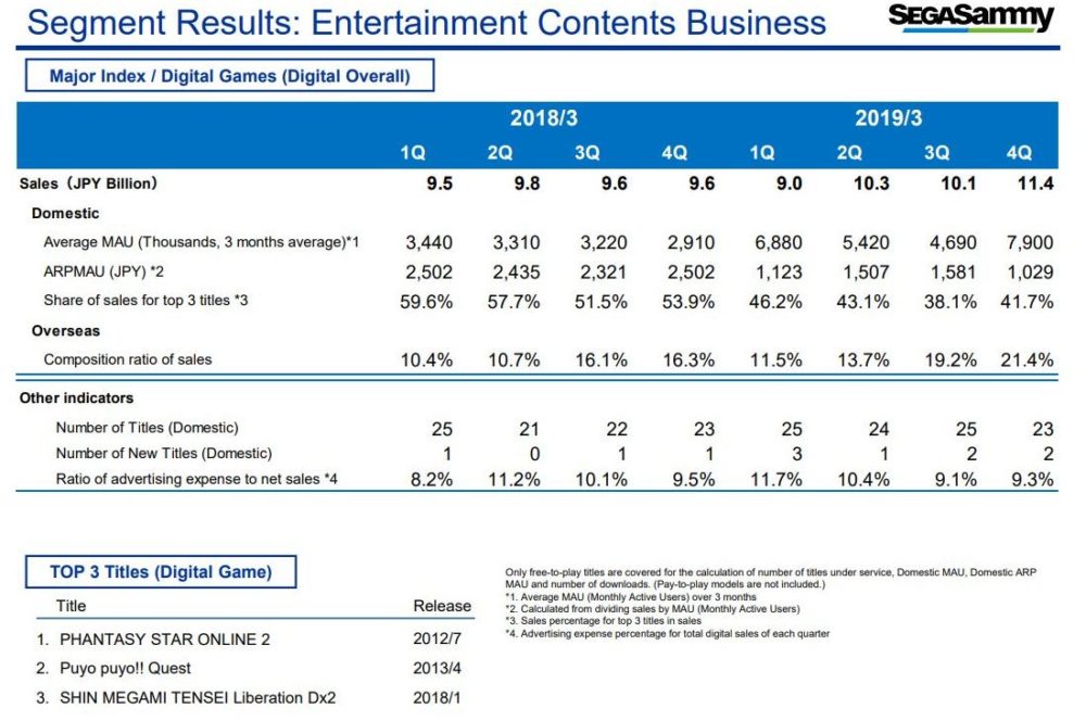 The same situation is recorded with the Entertainment content business, which includes the gaming segment (mobile/online/social, home games, and amusement machines).