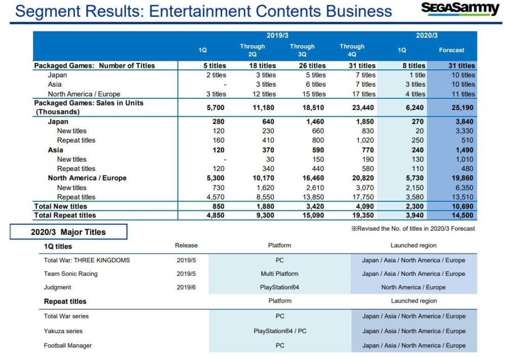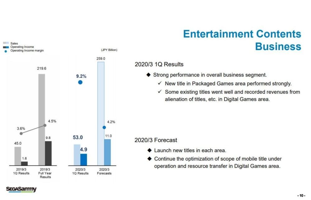 We also get an explanation of the forecast for the full fiscal year ending in March 2020. Sega promises to strengthen IP development on multiple platforms and in all regions.
