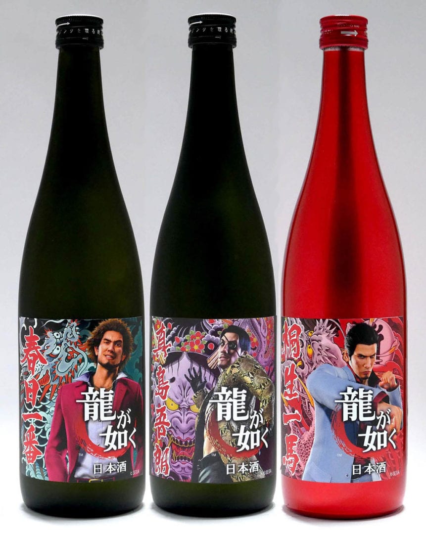 On top of the Sega-branded Sake, we also get a version dedicated to the Yakuza series with three different bottles featuring Kazuma Kiryu, Goro Majoma, and Yakuza: Like a Dragon hero Ichiban Kasuga.