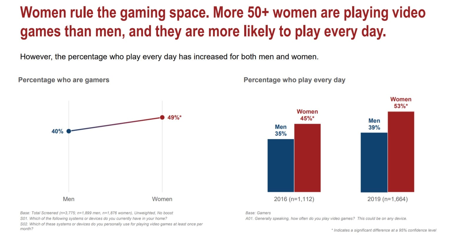 A survey conducted by AARP has found that the senior gaming demographic has exploded in recent years, rising by 10 million since 2016; 44% of the survey’s respondents said they play five hours or more of games per week, the majority of which are women. Over the first six months of 2019, 50+ gamers spent a whopping $3.5 billion.