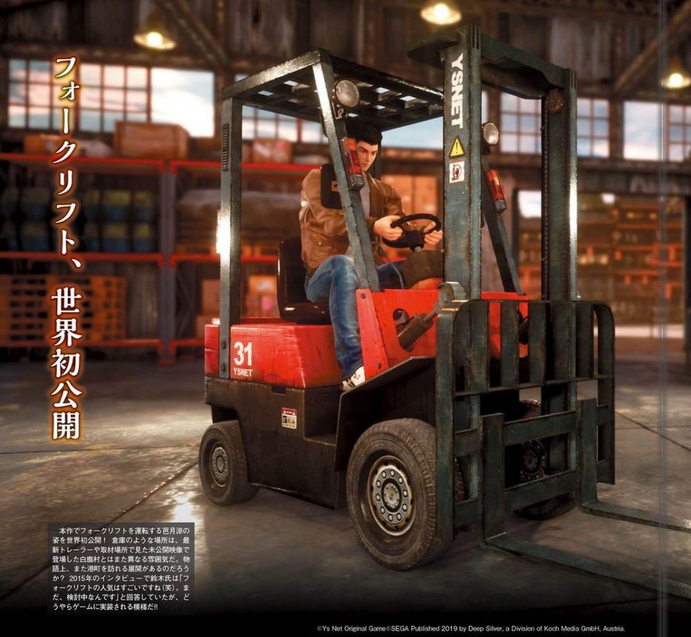 Today’s issue of Weekly Famitsu included an interview with Shenmue III Director Yu Suzuki, who showcased a screenshot showcasing the iconic forklift for the first time and provided new elements about the gameplay.