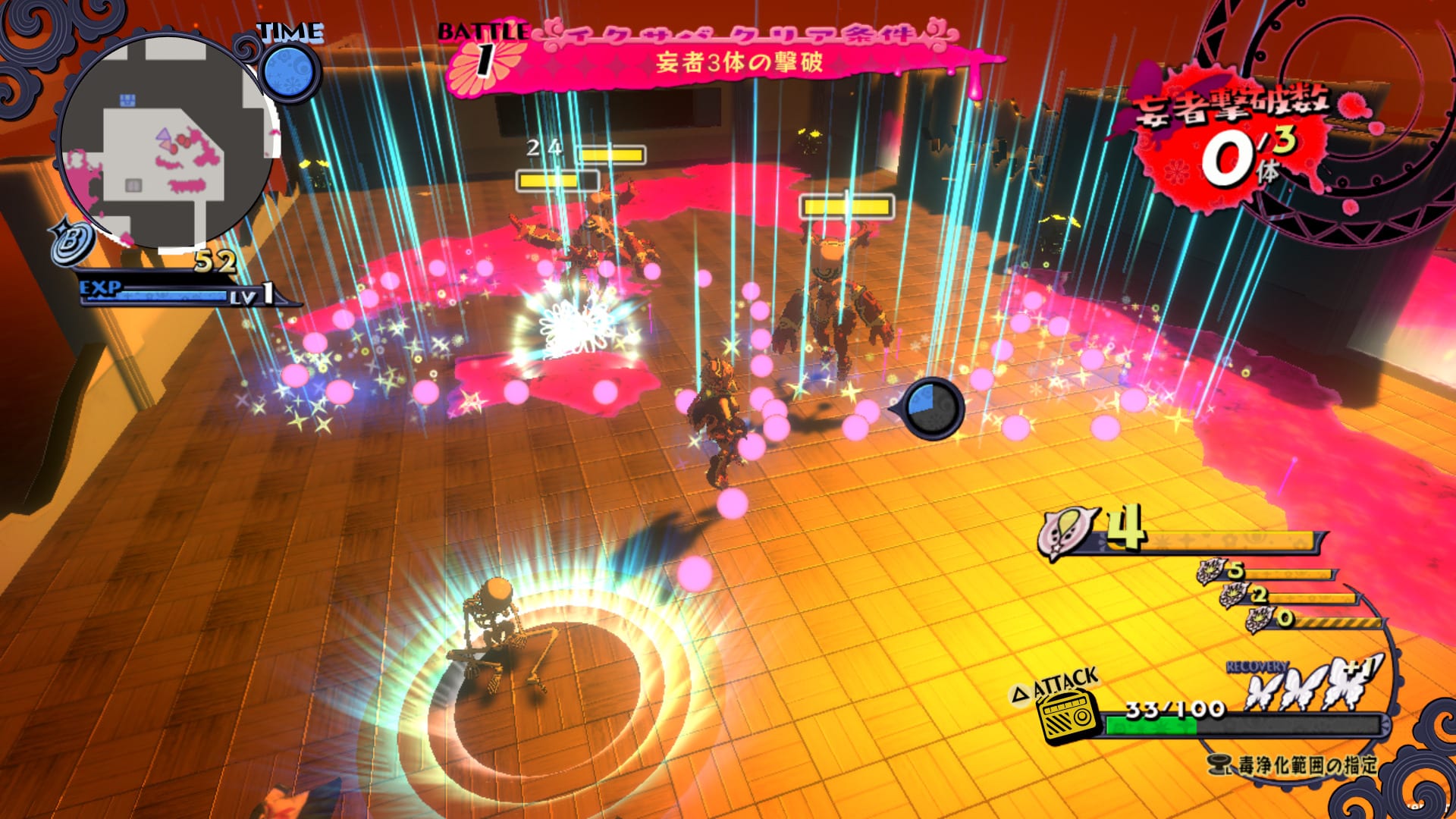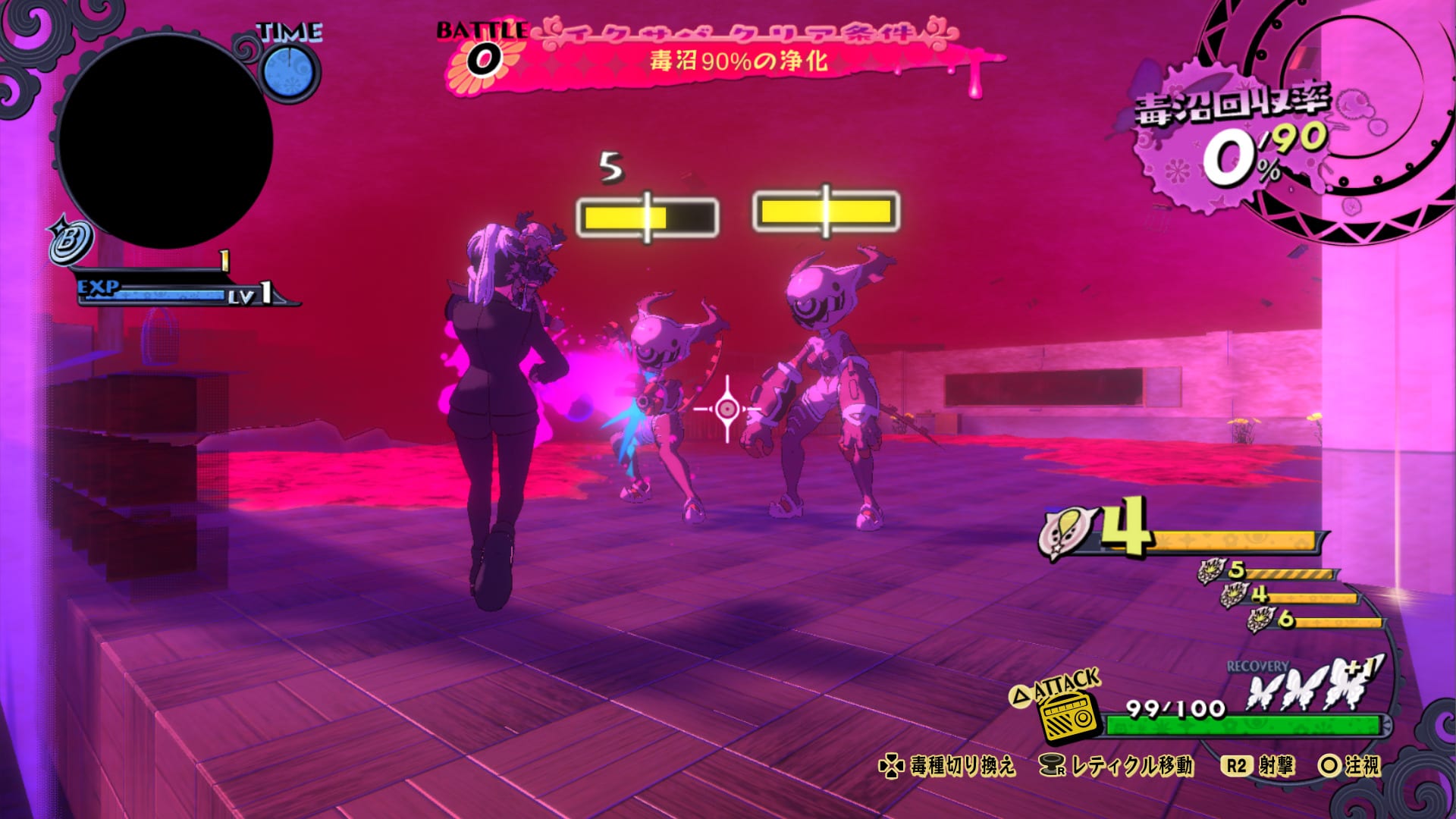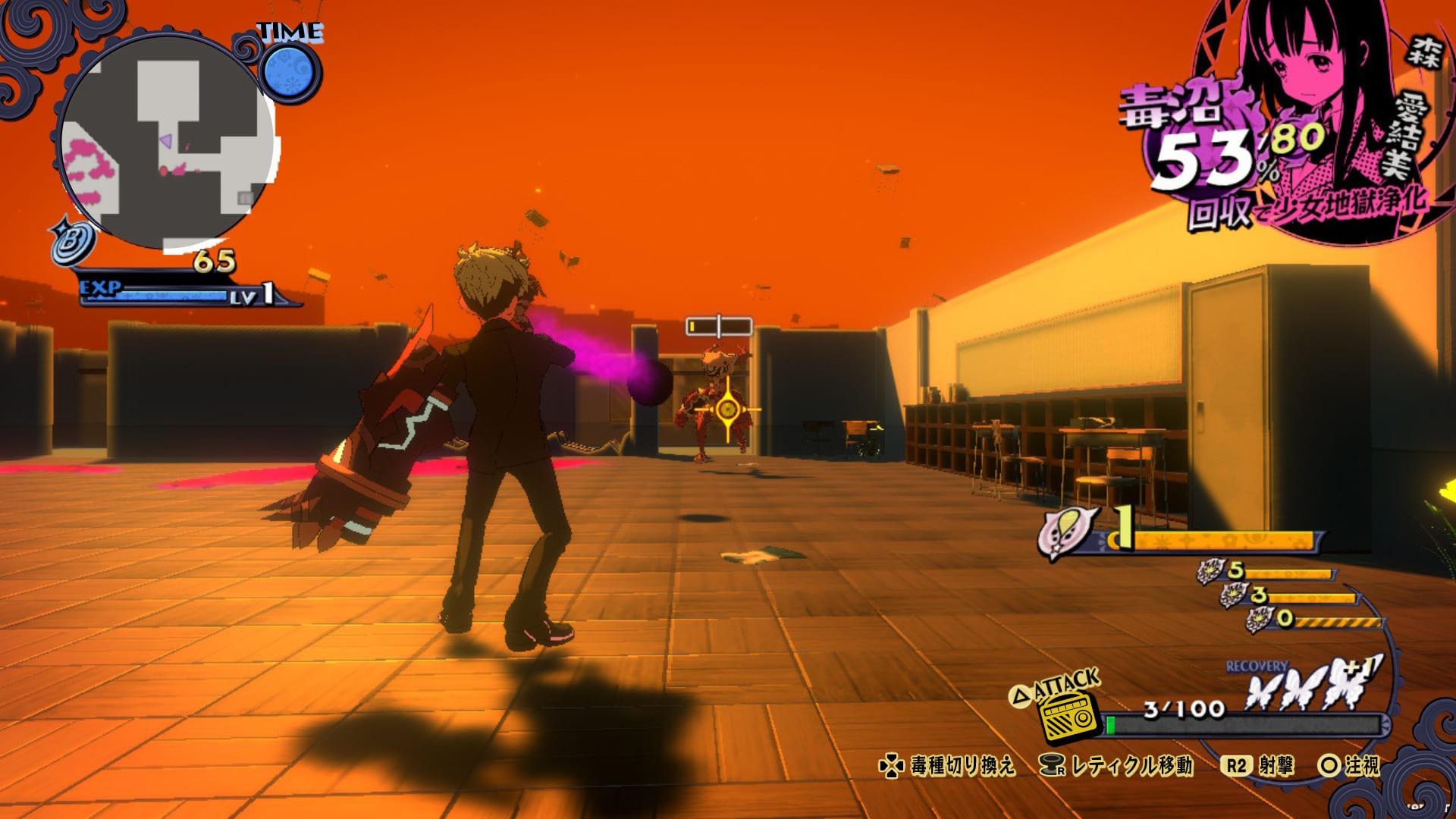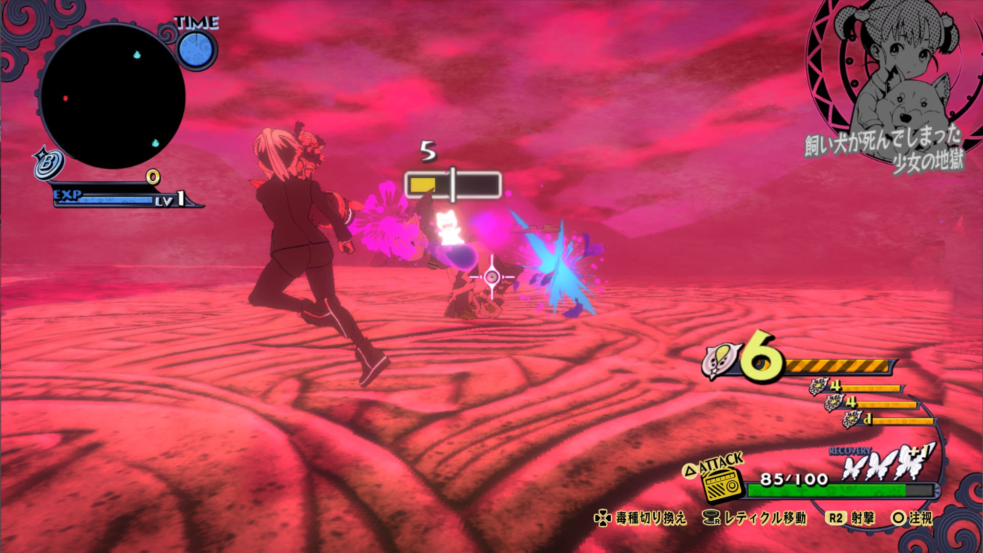 Attacking enemies is achieved by shooting poison. The basic shoot type is poison bullets, but there are other kinds that can be obtained by progressively purifying Hell. We also see different stages associated with different girls.