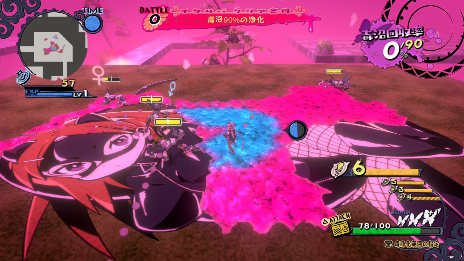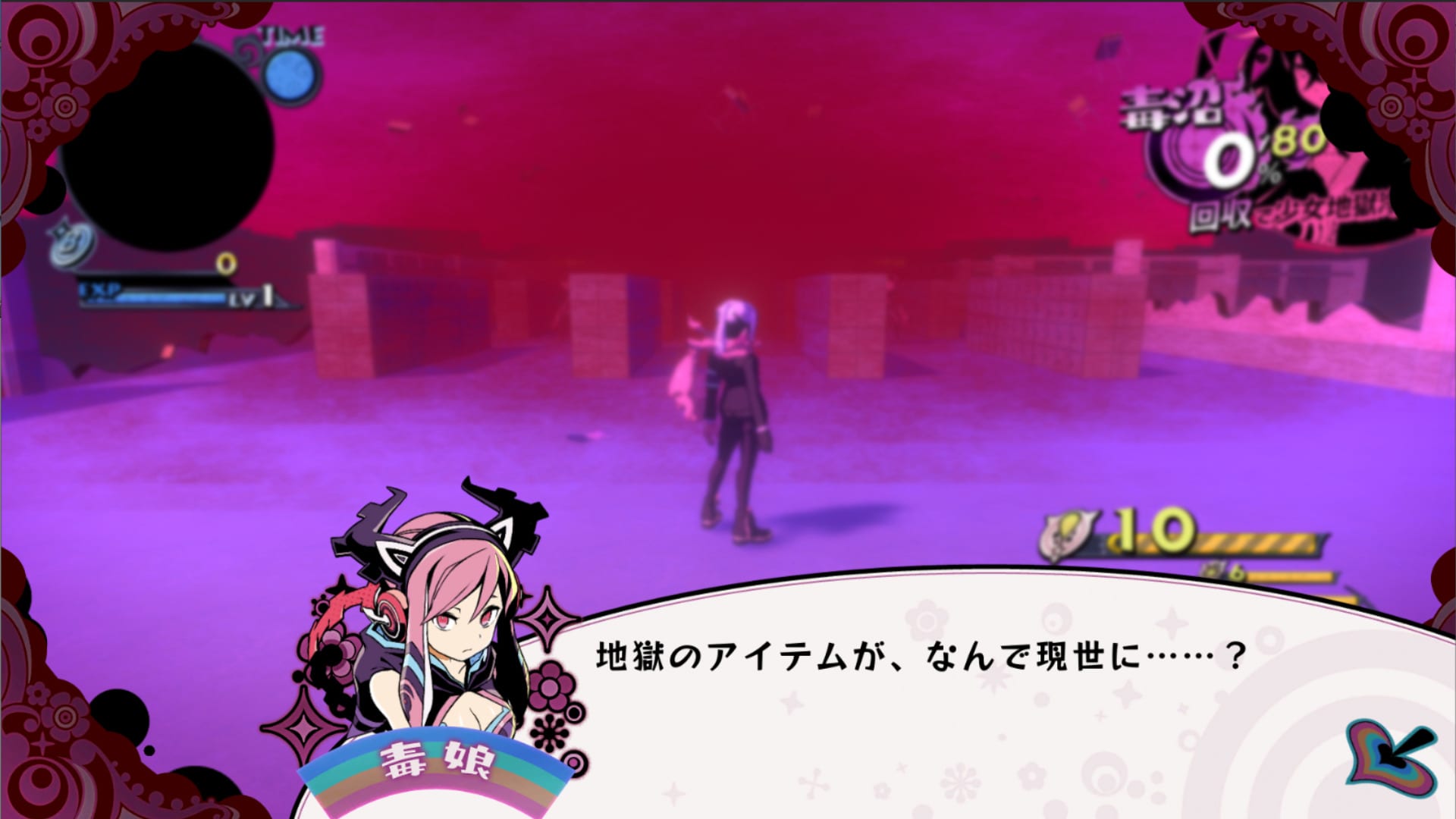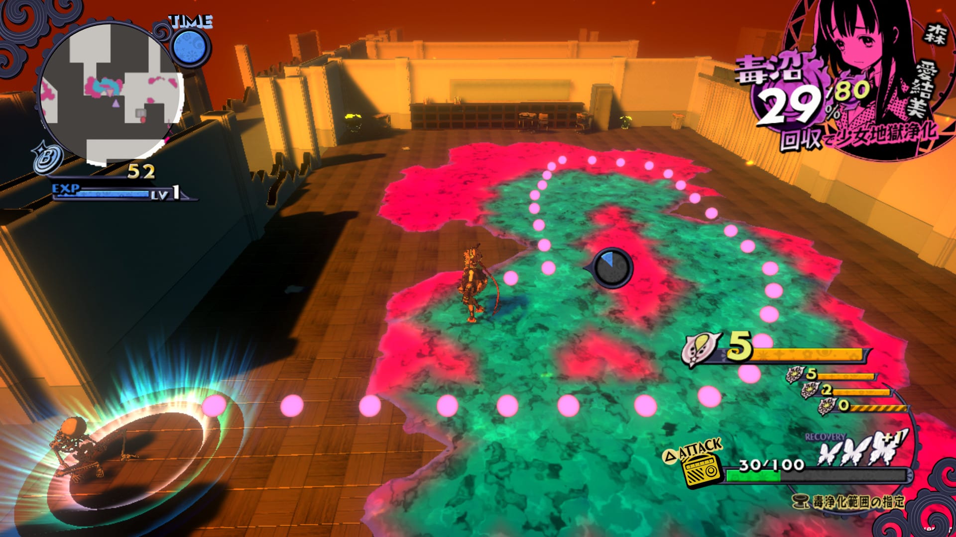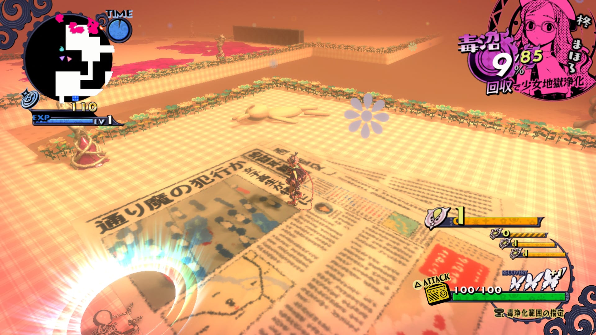 The strong feelings of girls create “poison swamps” in Hell. The goal of the hero is to collect said poison, purify it, and save the girls.