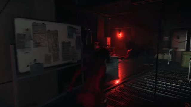 When the chase sequence with Martinico begins, and you run around the corner to turn the pump wheel to stop the gas leak, you normally will then run around the next corner and squeeze through the white bulkhead doors on your left to get free from the monster, for a moment at least. From there, you’re forced to crawl through a sewage-filled passage underneath the main pathway where Martinico is lurking, to get to the other side of the facility and to the next section of the sequence.