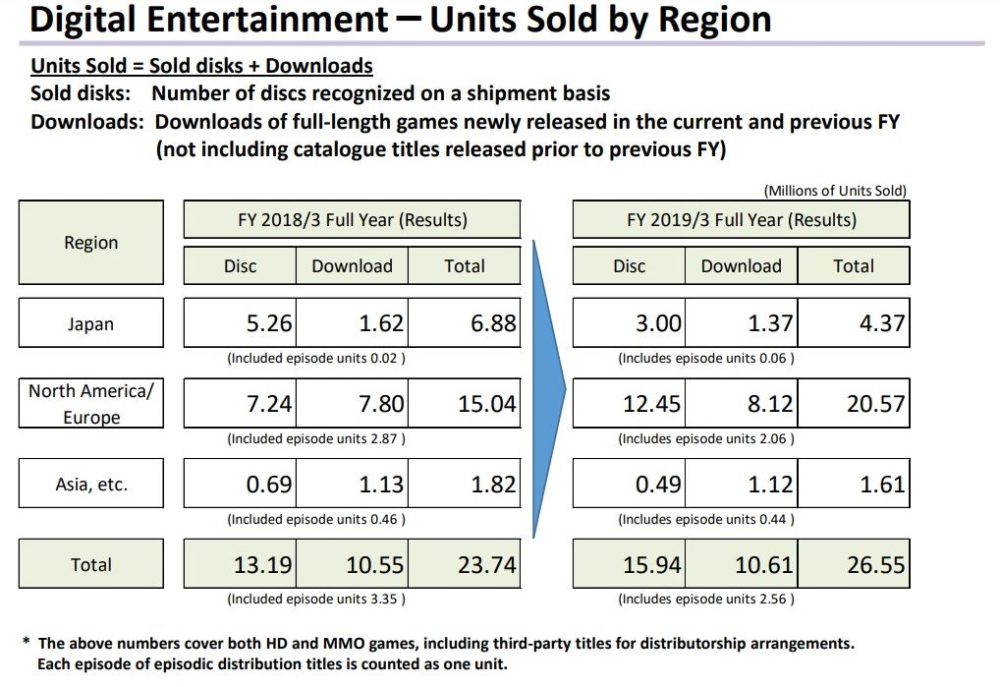 Square Enix shipped 26.55 million units of games, of which 15.94 in physical form, and 10.61 in digital download.