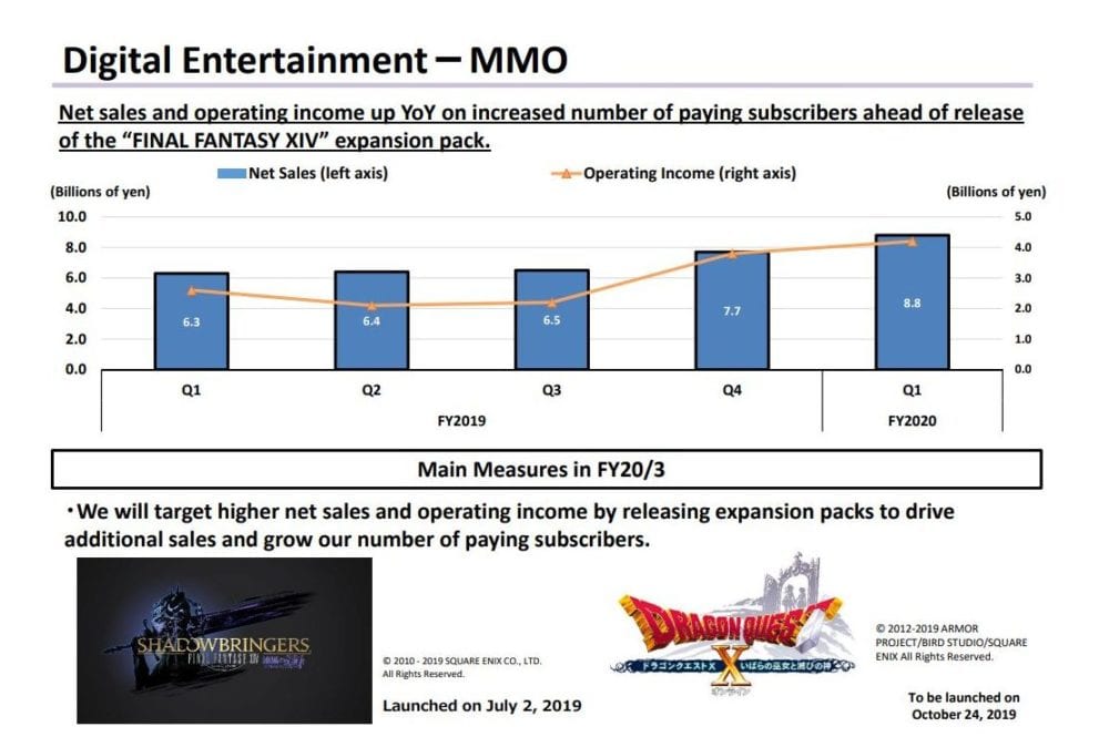 Notable is the “strong” subscription revenue for Final Fantasy XIV achieved before the launch of the Shdadowbringers expansion. This is quite remarkable, as MMORPGs usually drive higher revenue at and after the launch of an expansion. It certainly showcases solid anticipation by the game’s audience and the overall success of Final Fantasy XIV as a subscription-based MMORPG.