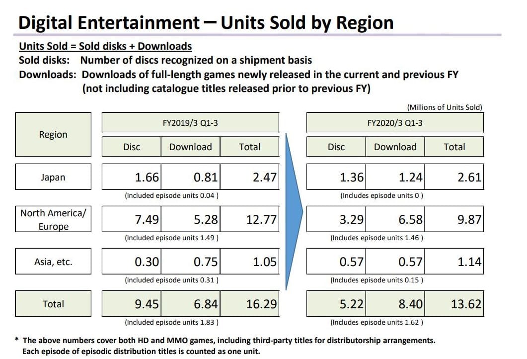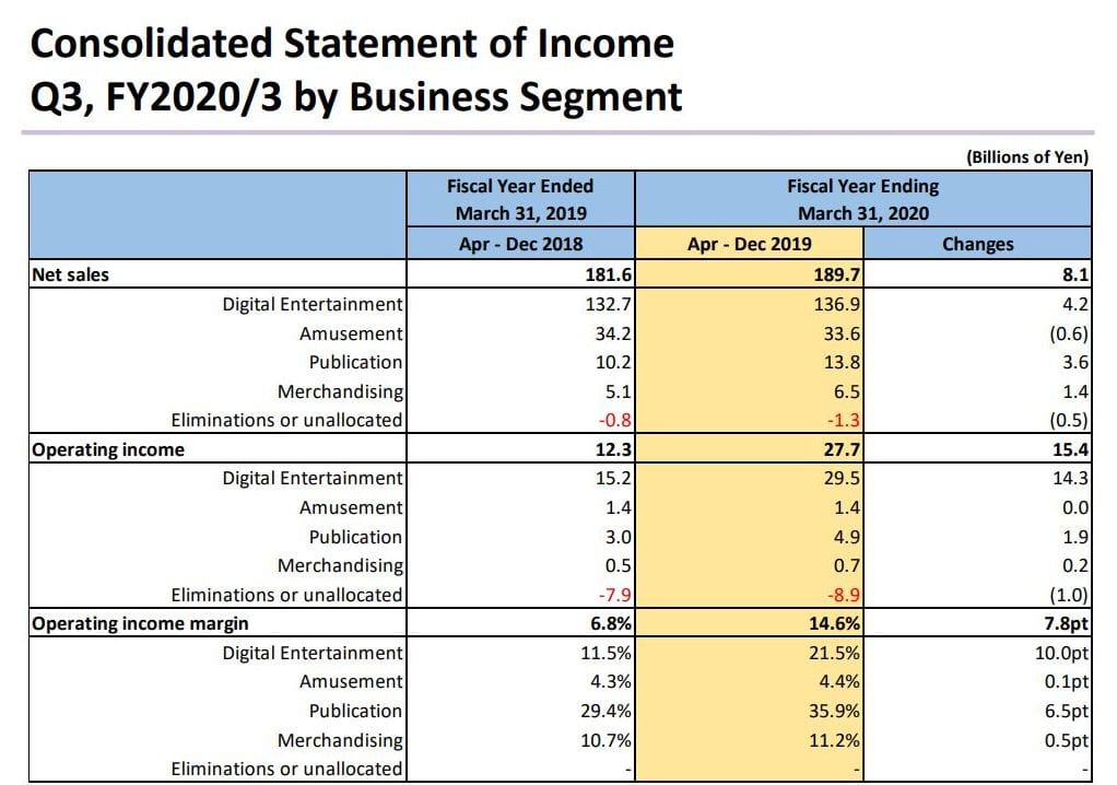 We also get a detailed breakdown of the performance of the digital entertainment business, which includes console games, MMORPGs and mobile games.