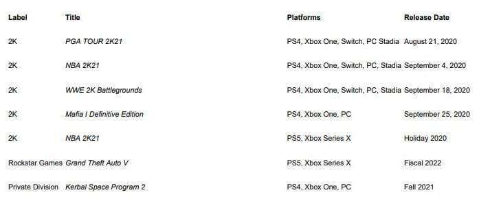 Last, but not least, here’s a look at the upcoming games from the publisher’s brands. This includes the confirmation that Grand-Theft Auto V will release for both PS5 and Xbox Series X.