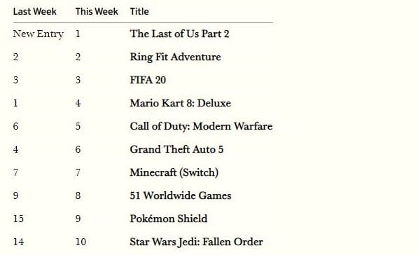 The physical video games sales charts by Gfk for last week in the United Kingdom have consecrated the local commercial success of The Last of Us Part II.