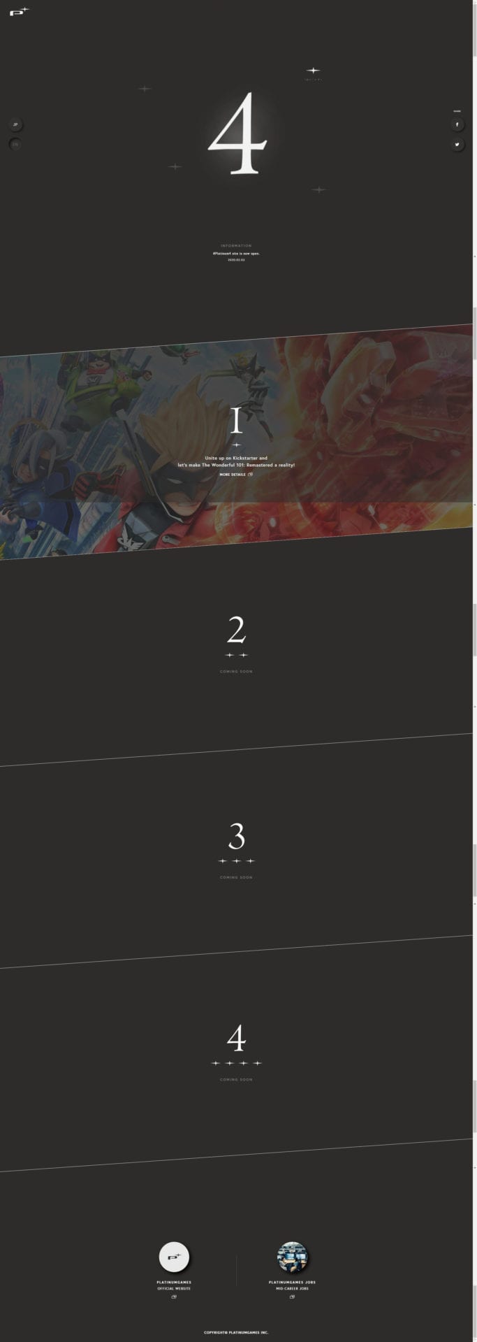What’s also very interesting is that PlatinumGames updated the teaser website published this morning, clearly indicating the meaning of that “Platinum4” tease. This is only the first of four projects.