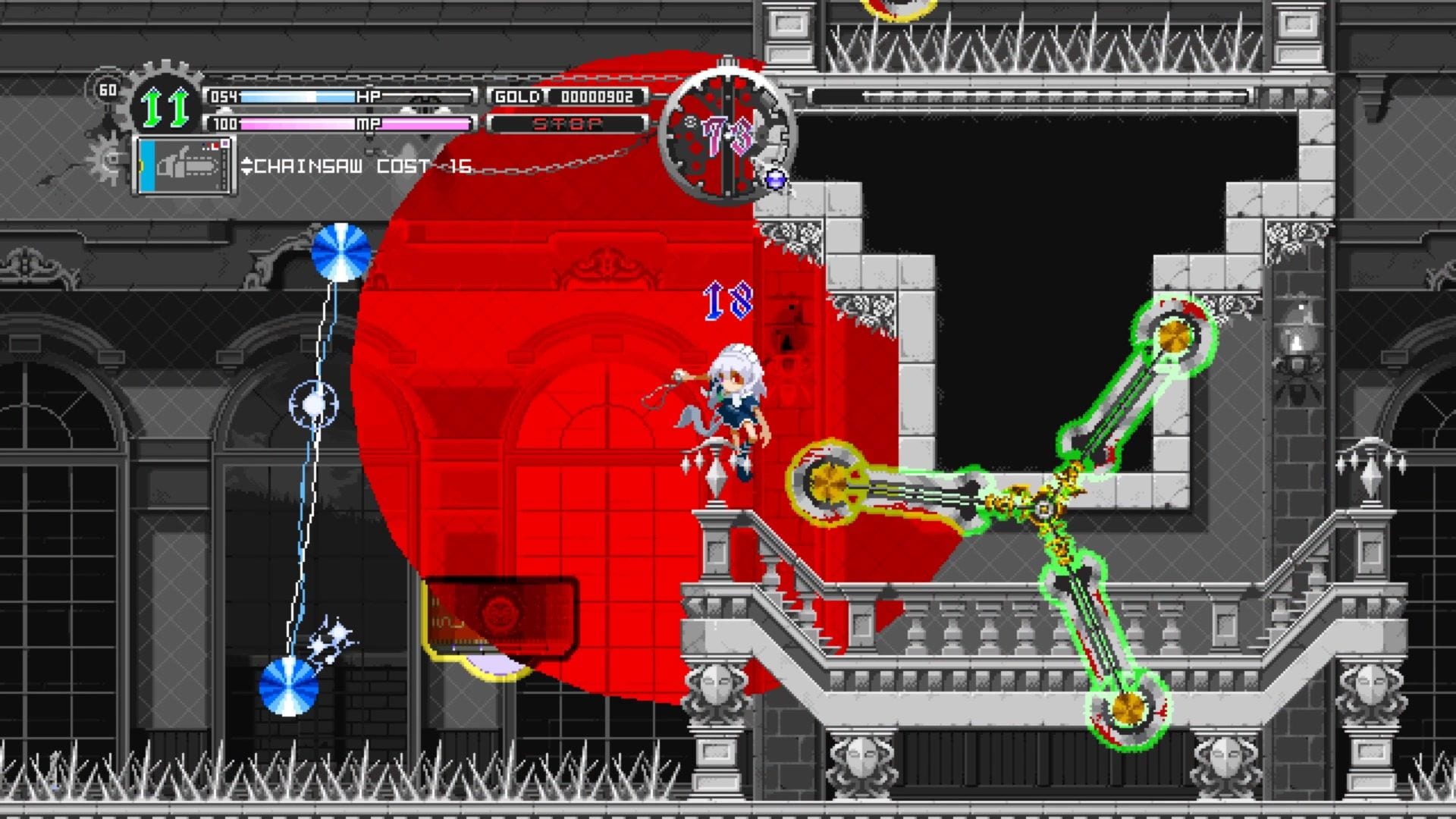 The action in this title is heavily based around Sakuya’s inherent ability to stop time and her skills with throwing knives, all expressed through stunning sprite animations. Aside from this there is the well known Touhou Project Graze system where you can avoid enemy attacks just in time to restore HP and MP and promote an exhilarating style of gameplay”