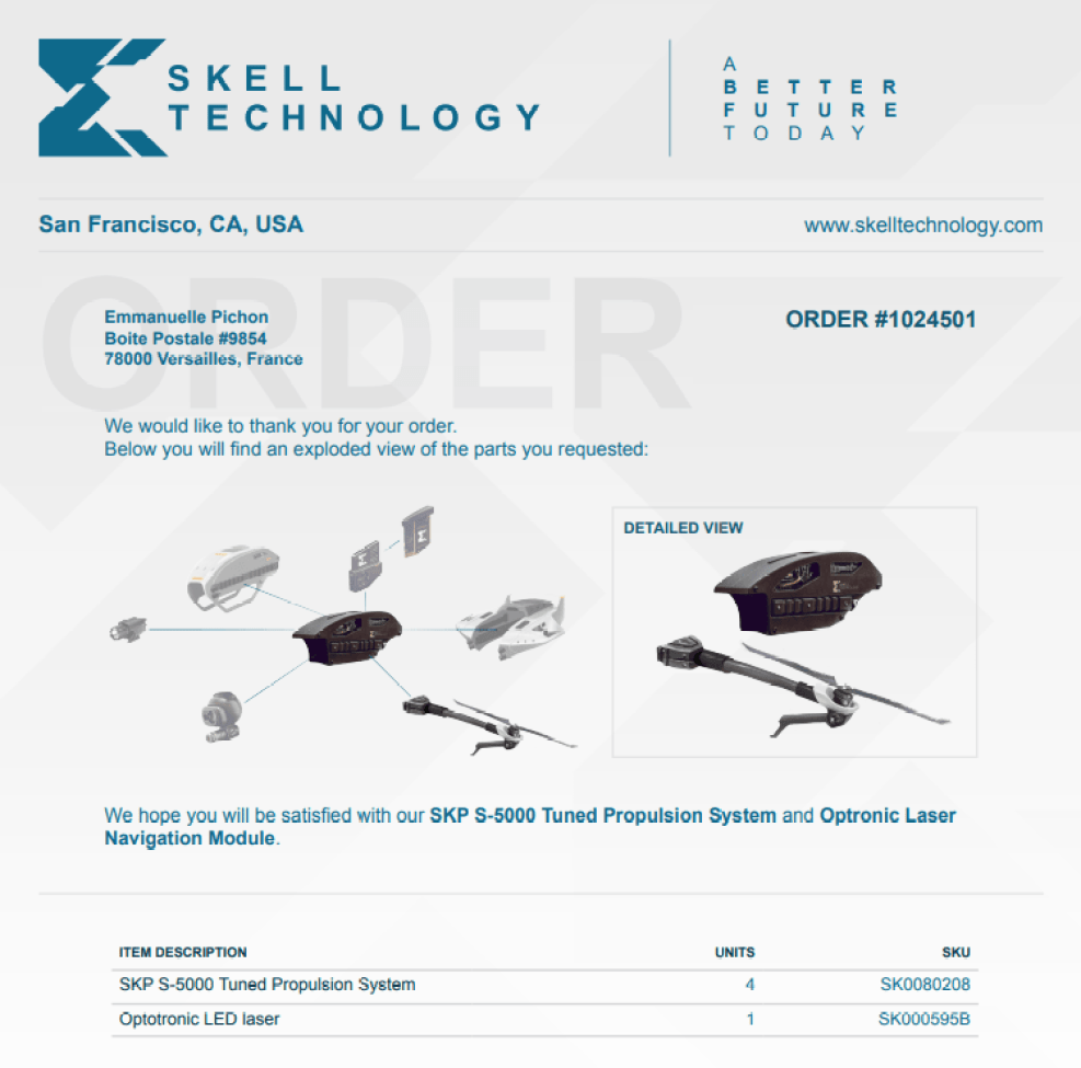 That’s not the only secret the website holds. With username “epichon” and password “15034,” you’ll gain access to a customer’s account which shows a PDF file containing recent order details from Skell Tech.