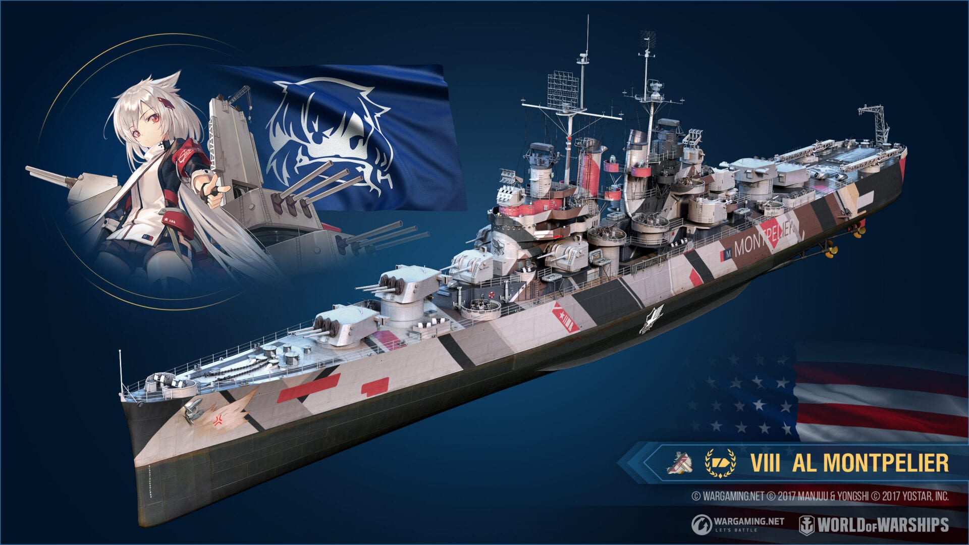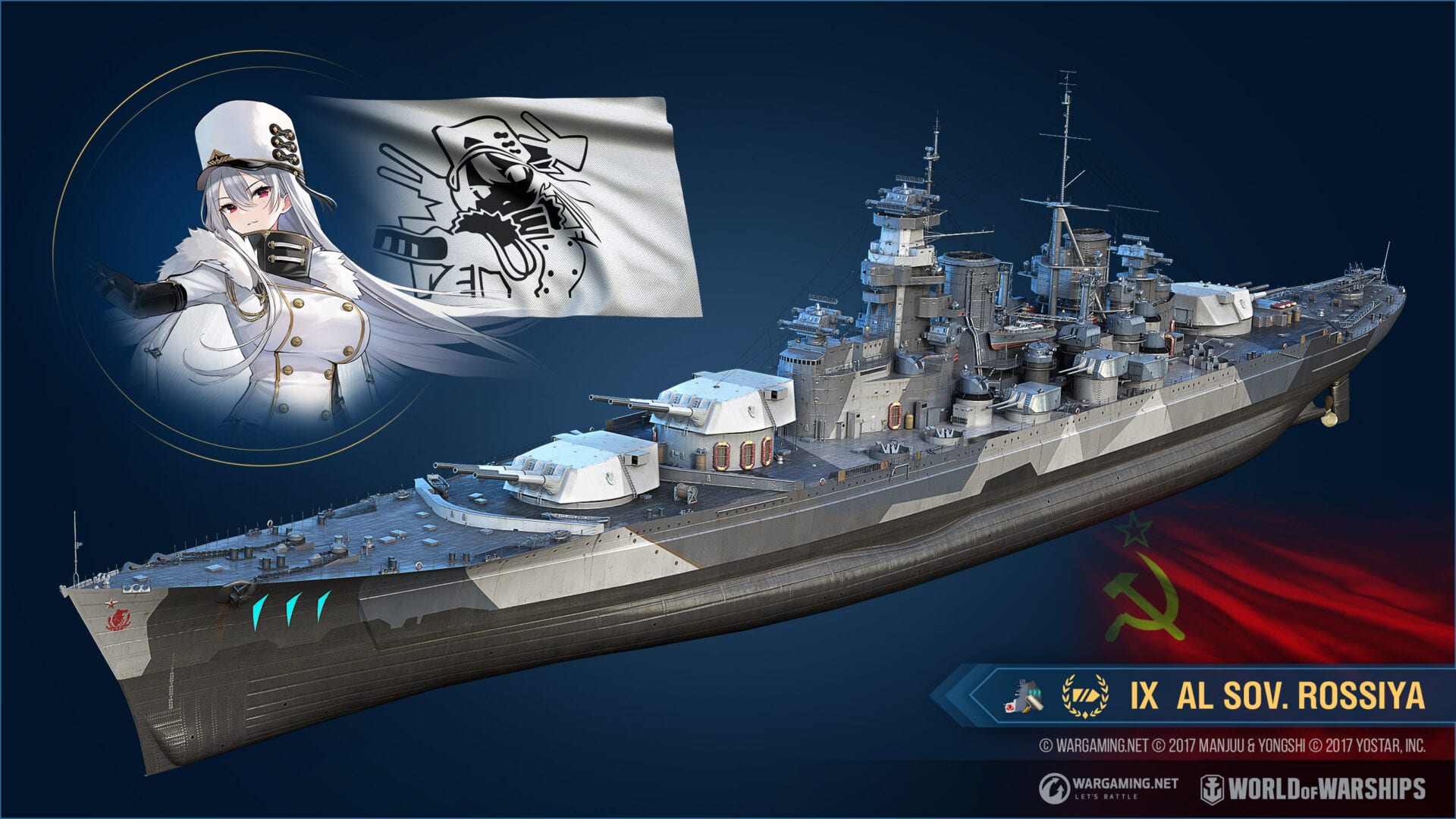 “Seven additional popular characters from the Chinese anime franchise, Jean Bart, Roon, Littorio, Shokaku, Yat Sen, Sovetskaya Rossiya, and Baltimore will be featured as World of Warships Commanders with unique voice-overs. The new battleships Italian AL Littorio and Soviet AL Sovetskaya Rossiya join the existing special ships — American cruiser AL Montpelier and Japanese destroyer AL Yukikaze — with their own distinctive themed camouflage. Three new camouflages for Belfast, Dunkerque, and Atago have been added to the set of existing Azur Lane permanent camouflages for the Nelson, Hood, Admiral Hipper, Cleveland, and Enterprise.
