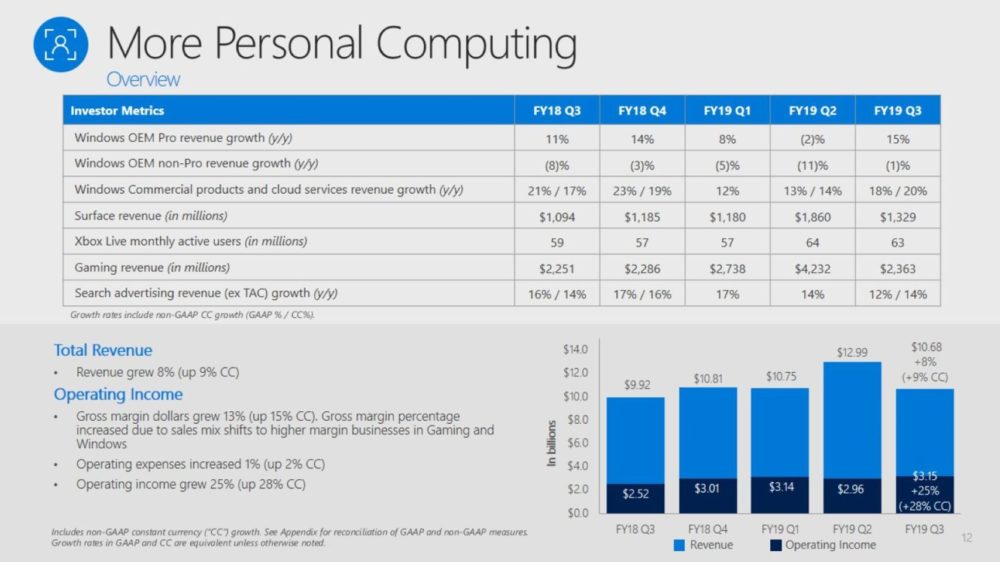 In particular, Xbox software and services grew by 12% driven by monetization of third-party games and growth in subscriptions.
