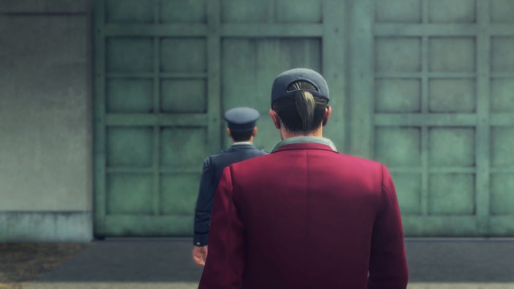 The screenshots show the beginning of the game, with the new protagonist Ichiban Kasuga spending 18 years in jail after taking the fall for the young heir of the Arakawa family Jo Sawashiro at the behest of his mentor Masumi Arakawa.