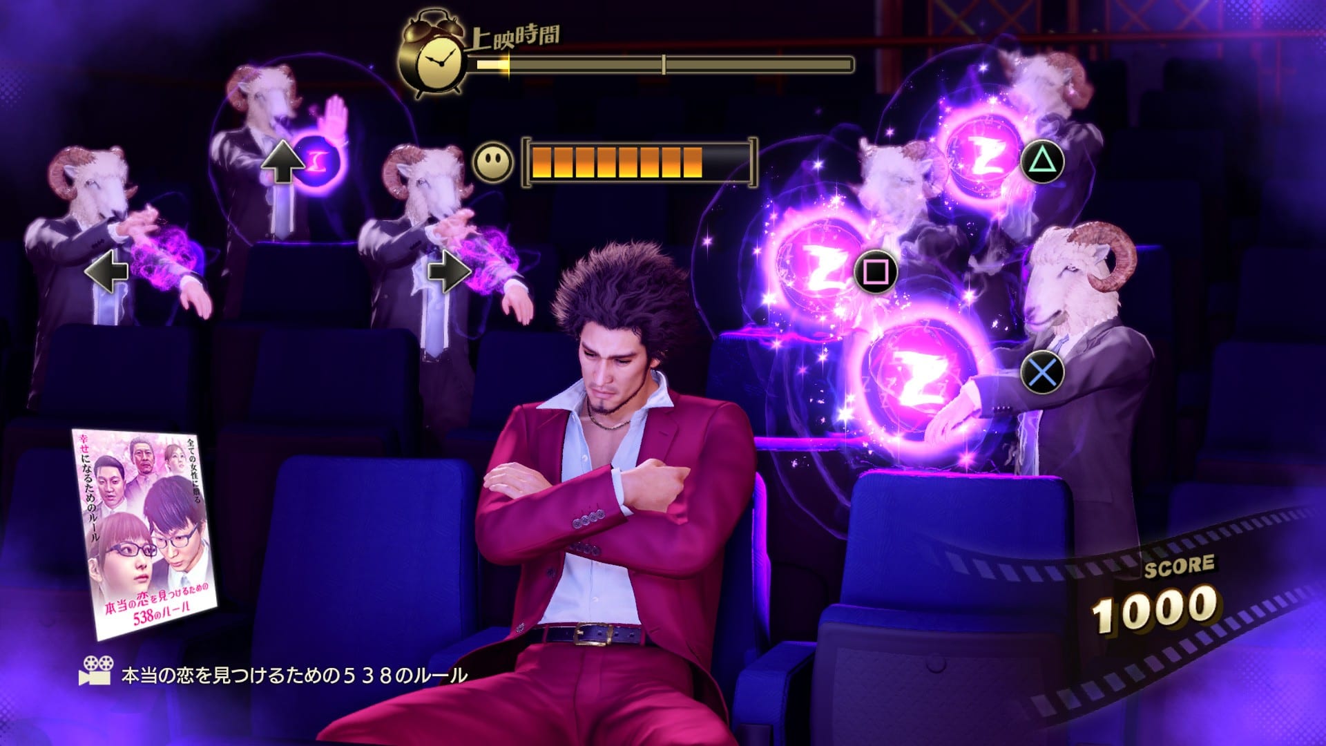 Our hero Ichiban Kasuga goes there to watch old movies, but suspicious “Sleepers” with sheep masks will try to induce him to fall asleep. He can resist their influence by pressing the right buns.