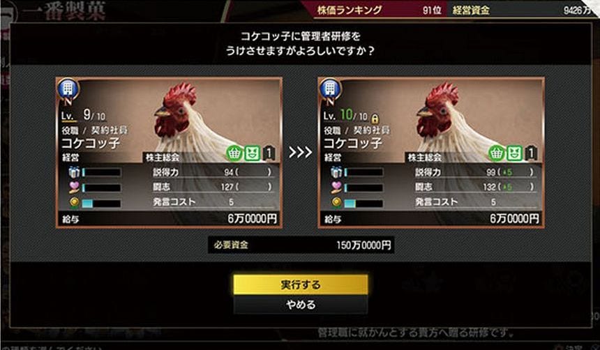 A correlated activity is the Shareholders’ Meeting. By facing the dissatisfied shareholders in a battle of wits you’ll have to secure a support rate of over 50%. By doing so, the company’s stock price will improve and your executive salary will grow with it.