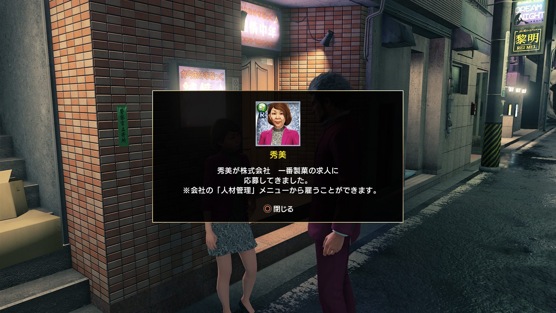 Some NPC can also be recruited to work at the company of which Ichiban becomes the president, but only if the appropriate Human Power stat is high enough.