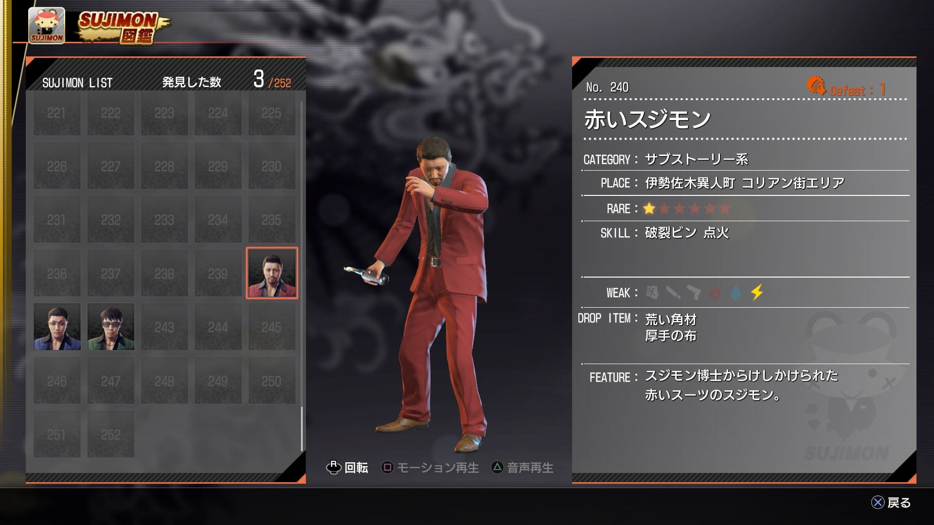 After following him to his lab, Ichiban learns that the doctor calls dangerous people in the city “Sujimon” and he created an app named “Sujimon Encyclopedia” in order to collect data and help to preserve the peace.