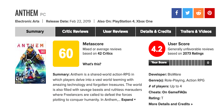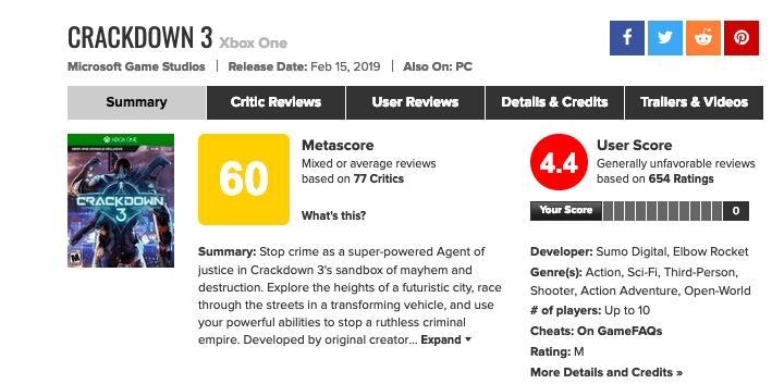 Yikes. When you consider that user scores are usually a little lower than critical reviews, everyone seems to have been on the same page on being disappointed with these major games from February 2019. They weren’t panned, and none of them are “bad” games, but they certainly don’t appear to be living up to their hype either.