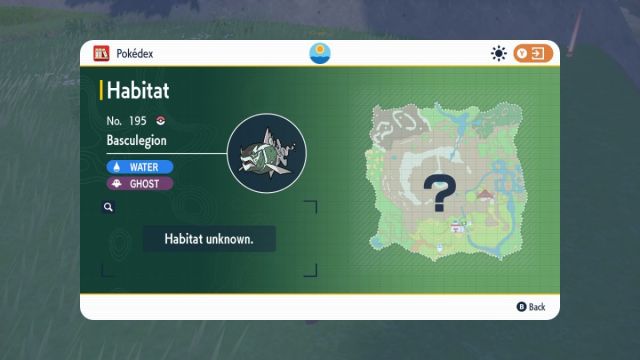 While Basculegion has been added to Scrlet & Violet through the Teal Masks’ Kitakami Pokedex, getting your hands on this ‘Mon is much trickier than others. As indicated in the screenshot below, the Dex entry for this Pokemon states that its habitat is unknown, meaning it is unable to be found and captured in the wilderness of Kitakami.