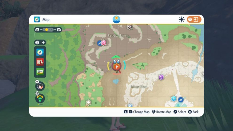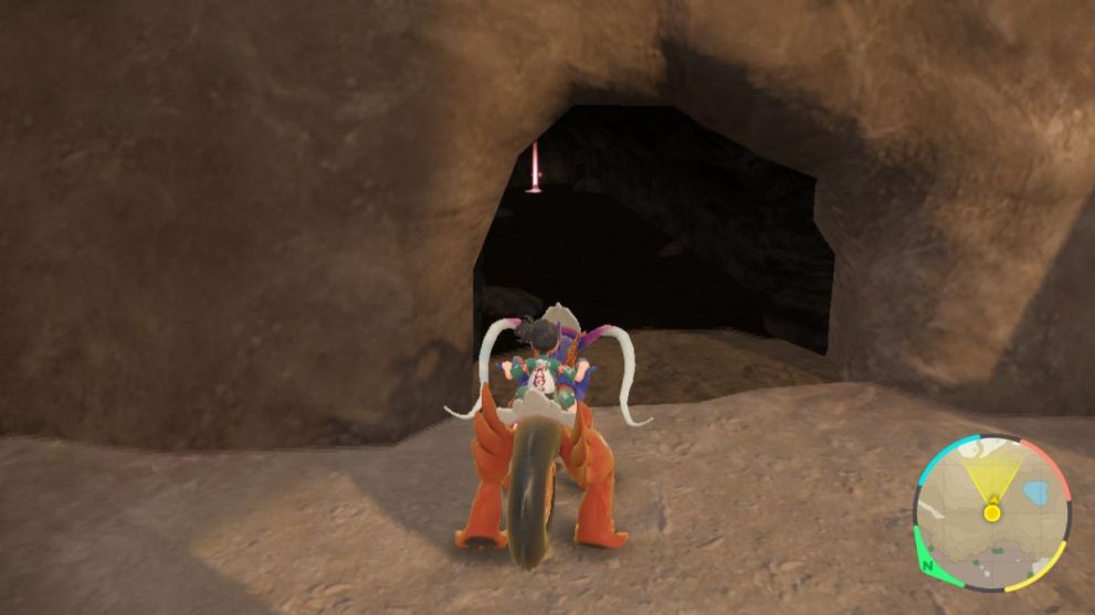 Once you arrive in this general area, stick to the path at the very bottom of the cliffs, and work your way around until you manage to locate this little cave in the wall. I was able to do so with ease by jumping down from the top of the cliffs and gliding on Koraidon, so this method may help you out in locating the cave for yourself.