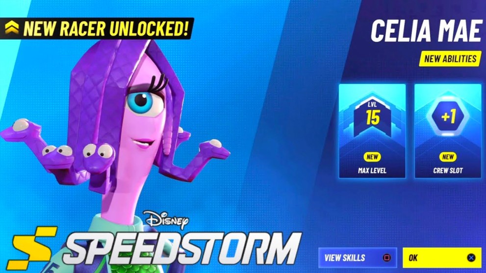 Celia Mae, from Monsters, Inc., starts at the bottom of this list because she is the racer who lacks the most overall speed. Her starting stats are slightly below average and she doesn’t gain any advantages from her class abilities or unique skills. Since she’s a defender, her main benefit is a defensive shield when ramming into an opponent, and she can only gain extra boost by remaining in a rival’s slipstream. Her unique skill creates a circle around her that only generates a small amount of boost, but can be increased if there are no opponents around. This means when you’re going neck and neck for the finish, her unique skill is weaker per rival racer around you. And that’s just plain bad.