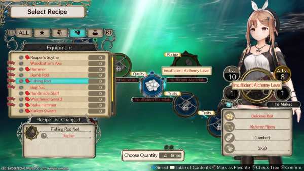 Alchemy (actual creation is referred to as synthesis) in Atelier has up to now been that you have to have the required set of ingredients to synthesize the item you need, but with Ryza now you only need one main item and the rest are purely for enhancement. This change has made it so that synthesis is the most approachable and intuitive that it has ever been. The recipe layout is clean and easy to follow, with upping the quality or adding traits now possible without spending forever to find just the right material in the field.