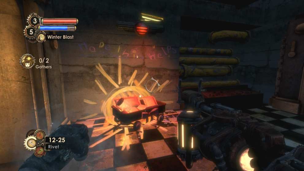 Environmental storytelling is also at its finest in BioShock, with so many small scenes hidden away, arranged just right so the events that took place are made perfectly clear. These are littered throughout the game at every turn –even when there’s not an audio diary nearby, it’s easy to pick up on just what happened.