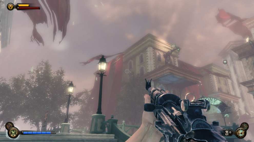 While the new setting of Columbia is an interesting new attempt separate from Rapture, it loses a bit of its charm due to the new airborne setting. There are plenty of places where it’s easy to forget that you’re in a city above the clouds in Infinite. Part of this is due to the more impressive (and more intact) architecture present, but it loses a bit of character in turn.