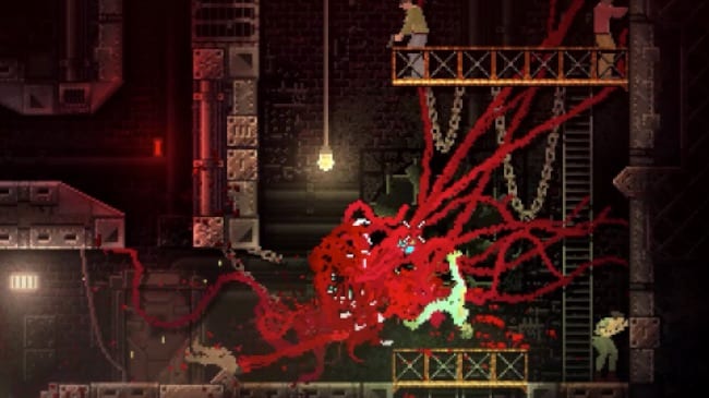 Carrion kicks off with a bang, as you, a fleshy, tentacled meat blob of a creature, escape from your containment tank and into the vents of a sprawling facility. It’s not long before you’re tearing open grates and snagging humans with your prehensile tentacles, dragging them into your fleshy, toothed maw. And as you eat your way through the facility, you’ll grow in size, gain new abilities, and become that much more of a threat.