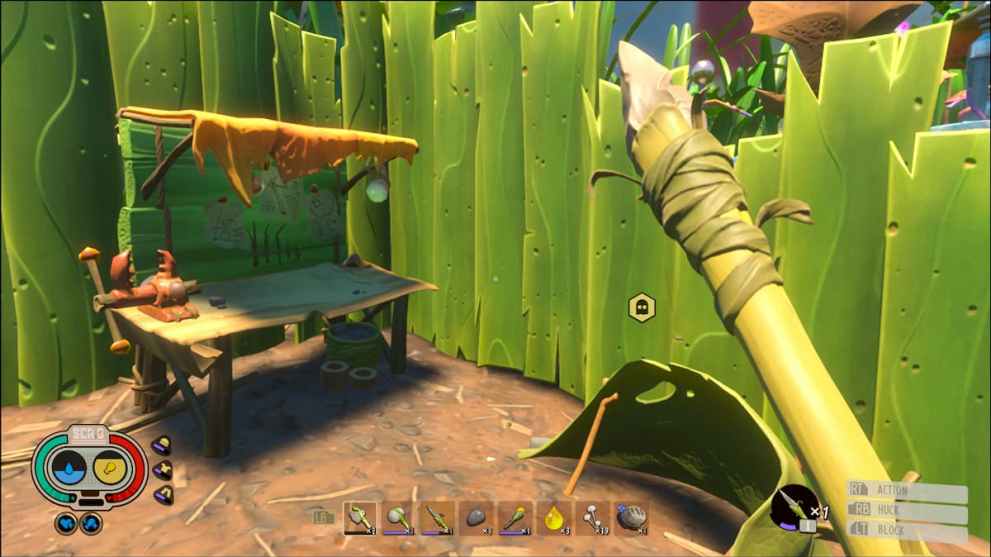 Compared to other games, Grounded is a bit more realistic with designs since clothing and buildable structures actually look like the crafting material they were built from. For instance, if you make a Lean-To shelter, you’ll see the Clover Leaf and Sprig you’ve collected in the finished product.