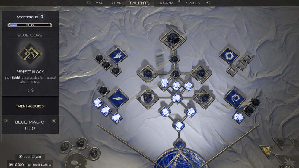 In fact, almost every aspect of combat is upgradeable in what’s certainly a standout gameplay element. From the aforementioned Sigils to Rings, Bracers, and Totems, nothing is off the table and players can upgrade their entire arsenal to match their playstyle. I quickly grew to favor Blue magic as a result of its accuracy and consistency, finding it the most reliable method of dealing damage to enemies. I naturally invested my time and resources (Gold and Essence, looted from around the world and rewarded upon defeating enemies) into improving my Blue magic.