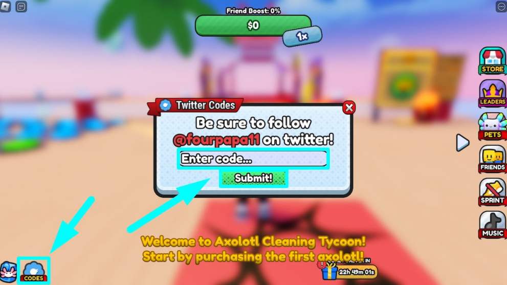 How to Redeem Codes in Axolotl Cleaning Tycoon
