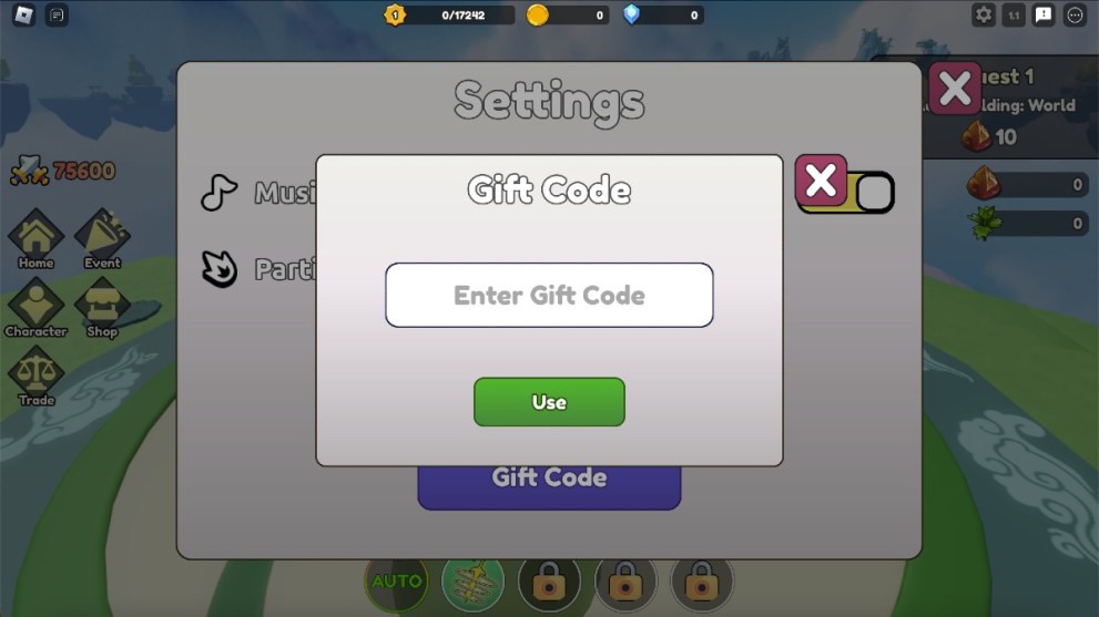 - Once you’re in a lobby, press the settings cog icon at the top of the screen and then the Gift Code button.