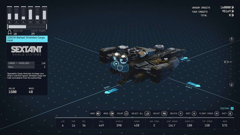 If you’ve built out your ship to a desired level and aren’t sure if it is actually space-worthy, the Flight Check option will let you know.