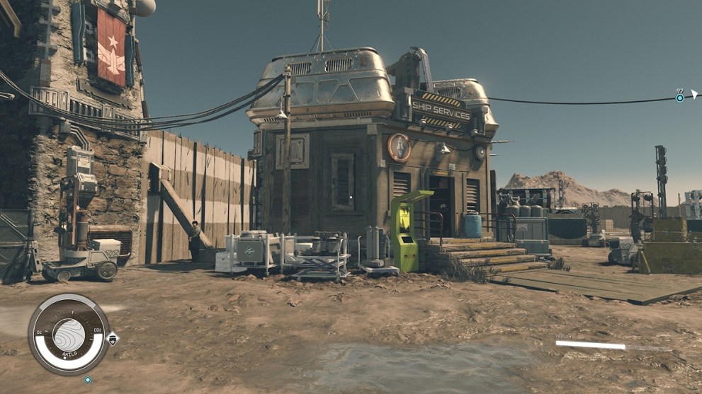The planet Akila should be easy to spot, and you’ll want to pick the Akila City landing spot. Upon landing, head under the Welcome to Akila City sign, and the Ship Services building will be directly ahead.