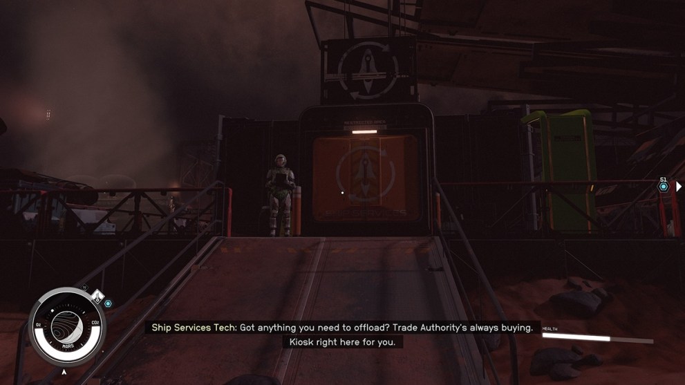 From the system map, navigate up to Porrima III and land at Red Mile. As this planet is freezing cold, don’t expect the technician to be as easy to reach as the rest. Instead, you’ll have to go into the airlock ahead into Red Mile proper.