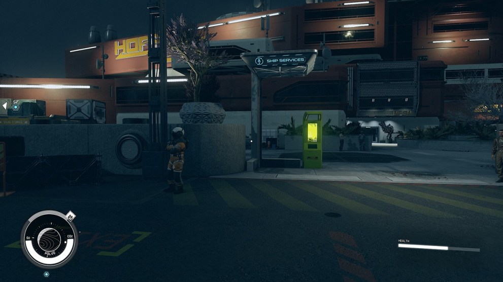 Inside this system will be the planet Volii Alpha, which houses the city we are looking for, Neon. As with Hopetown and Gregarin, the technician is right on the landing pad. However, they are actually in a Ship Services Building.