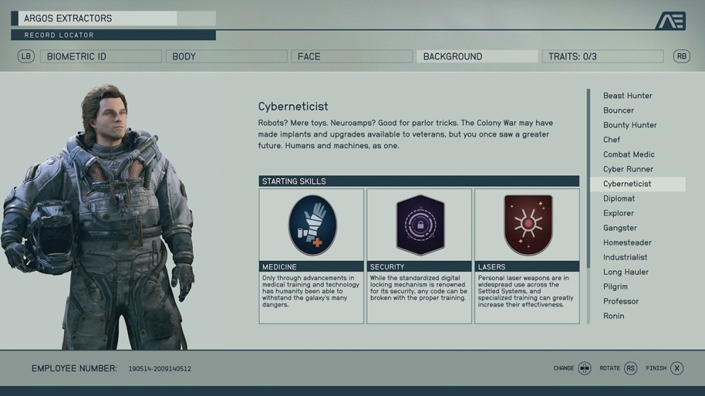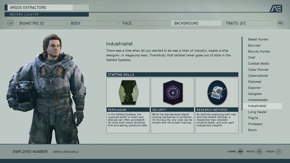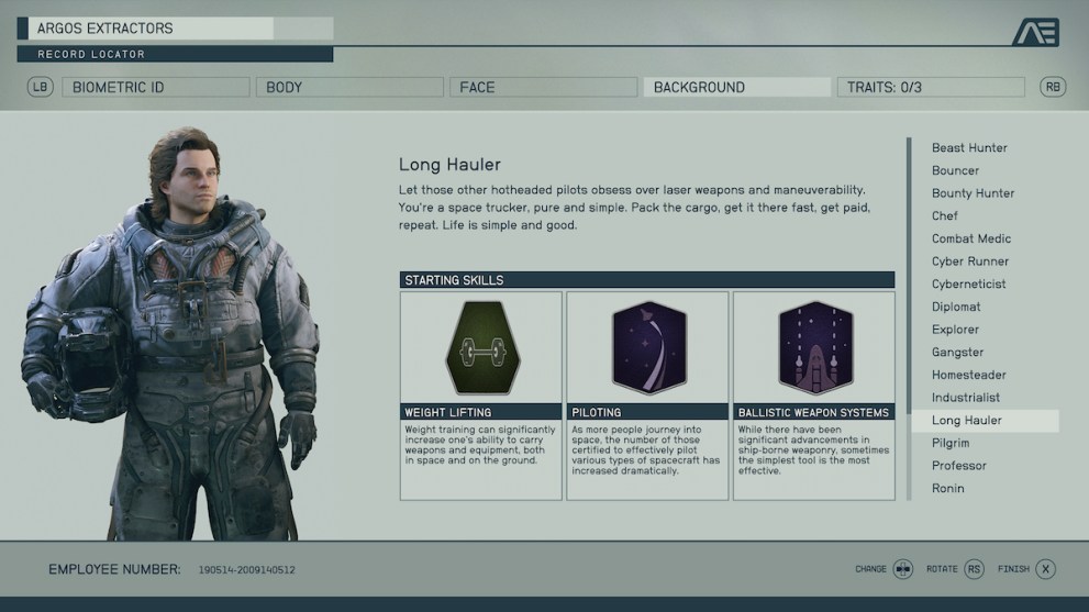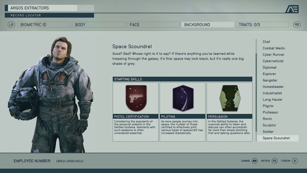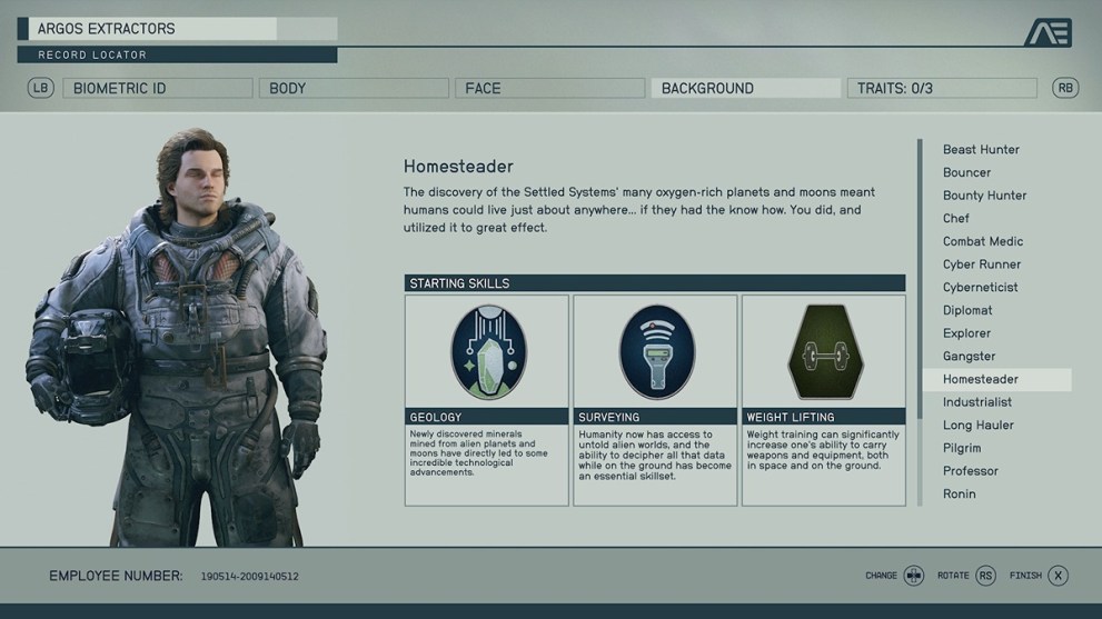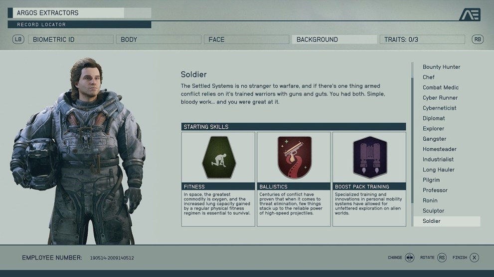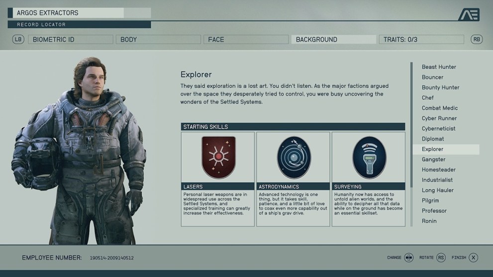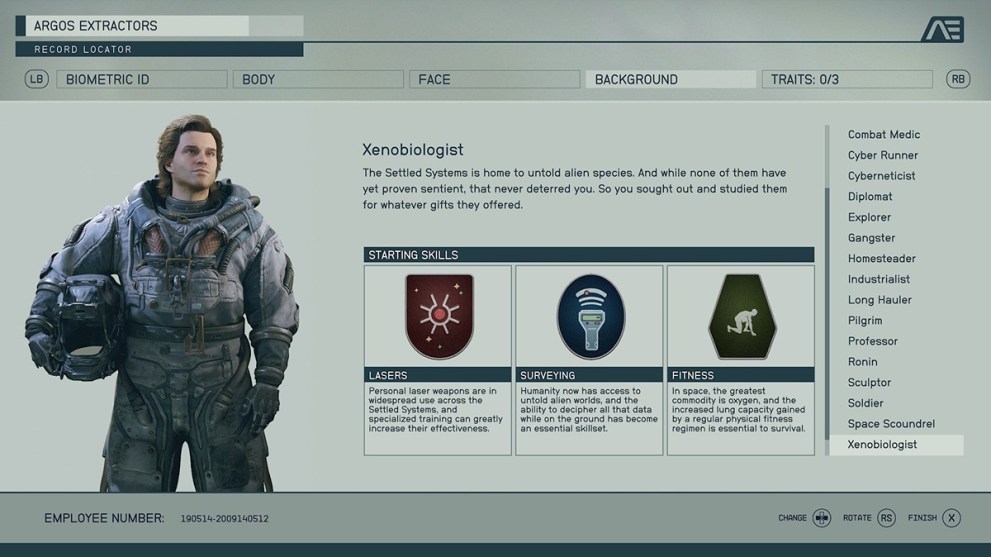 So many of these backgrounds include the Laser skill rank, and it doesn’t have the right immediate benefit. Astrodynamics makes a difference, but considering your only early trips will be story-based, it doesn’t have a decent bonus. Also, it comes with Survey, which equally doesn’t make enough of an impact on the early game to make sense to choose.
