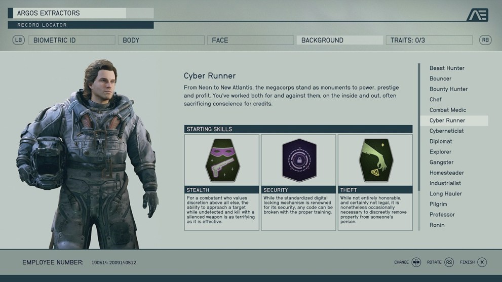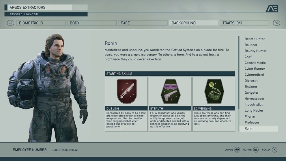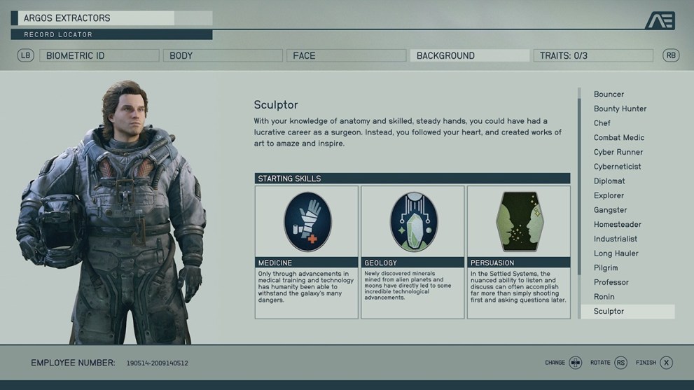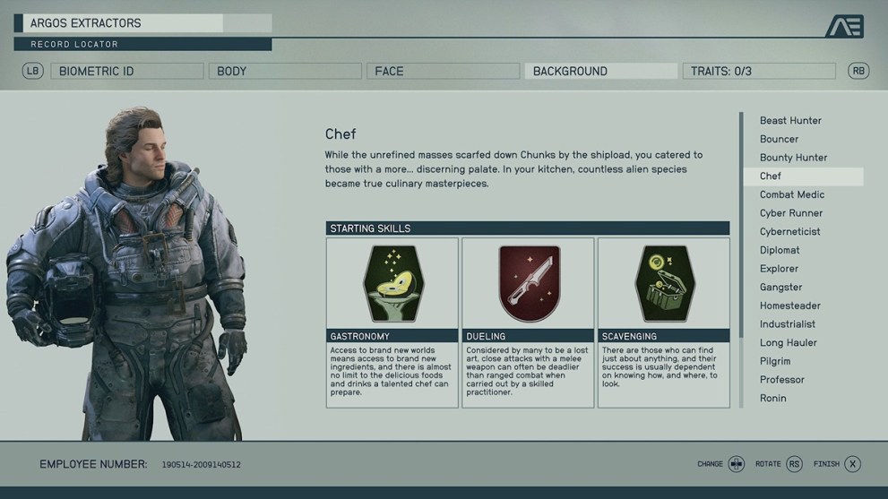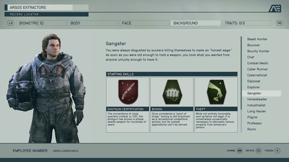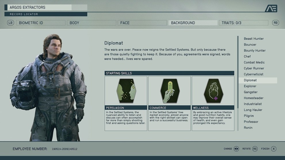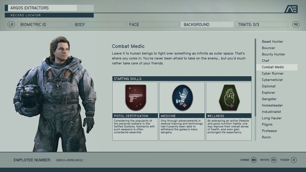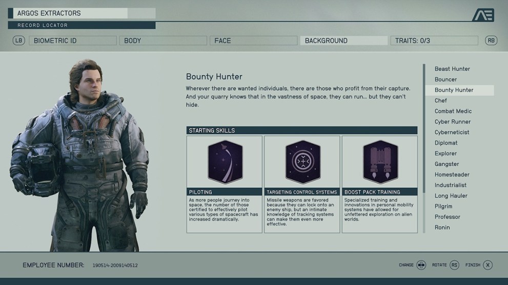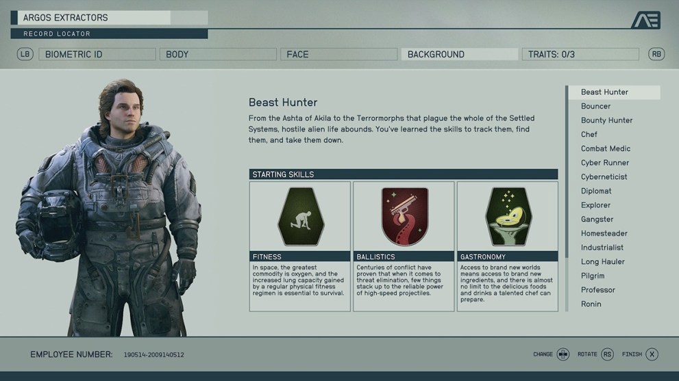 So many of these backgrounds include the Laser skill rank, and it doesn’t have the right immediate benefit. Astrodynamics makes a difference, but considering your only early trips will be story-based, it doesn’t have a decent bonus. Also, it comes with Survey, which equally doesn’t make enough of an impact on the early game to make sense to choose.