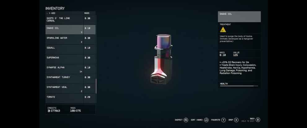 Treating Lung Damage Affliction with Injector or Snake Oil in Starfield
