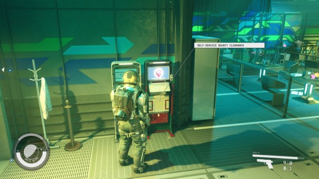Interact with the bounty kiosk and select the option to clear the bounty that’s been placed on you with the stated amount of credits. It might dent your wallet quite heavily depending on how mischievous you’ve been (a lot, if you’re like me!), but at least you won’t be harassed around the star systems anymore.